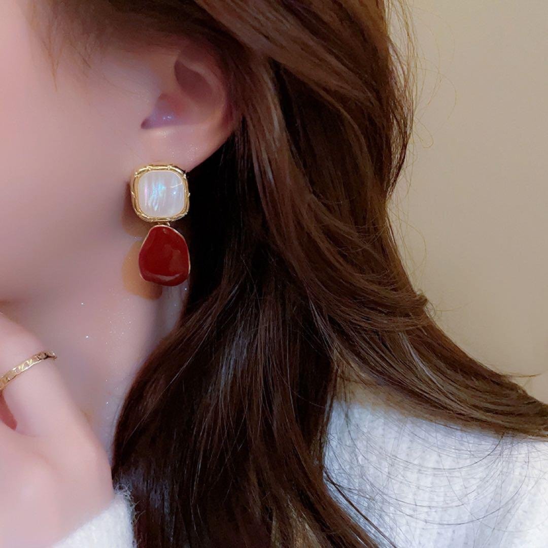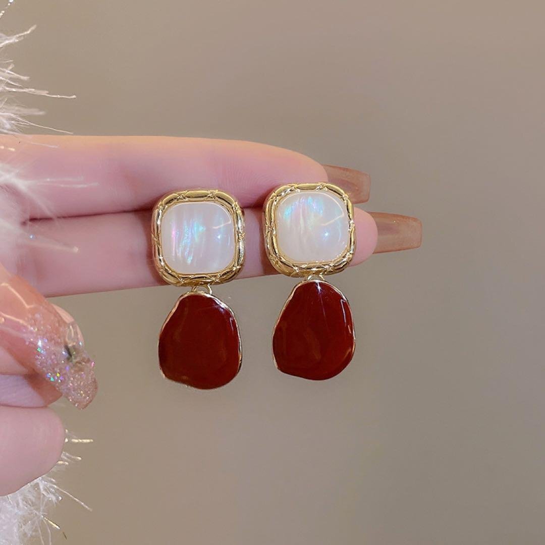 ワイン色ピアス,シンプルでおしゃれなデザイン,カジュアルな服装から、フォーマルな服装までさまざまなコーディネートに合わせられます。