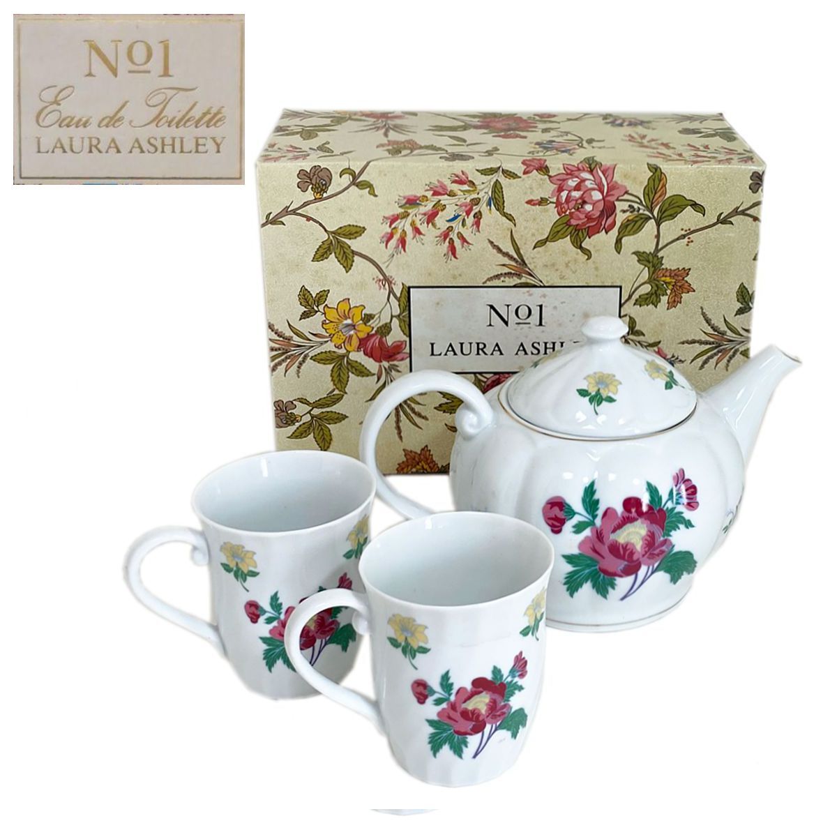 送料無料■未使用品【LAURA ASHLEY ローラアシュレイ】 No1 ティーポットとカップのセット 陶器 テーブルウェア 薔薇 花柄 フラワー 希少