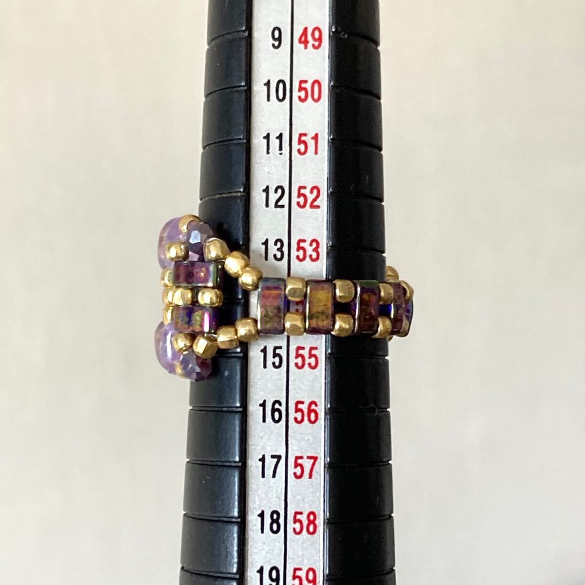 13-15号 ハーフティラビーズとツインビーズのリング パープル×ゴールド