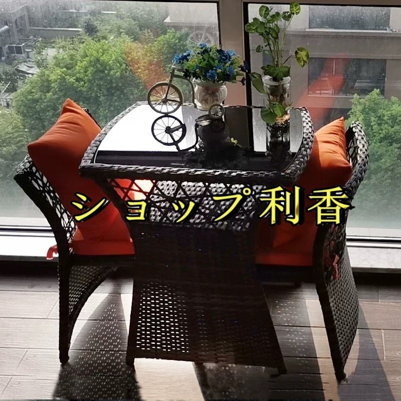 【良質な素材】テーブル1点とチェア2点の戸外3点ガーデンテーブルセットです。藤椅子は上質なPE籐材料と頑丈な金属フレームから作られ、耐久性と快適性を兼ね備え!藤製テーブル、テーブルの天板はガラス製で、飲み物などをこぼしても手入れも簡単です。