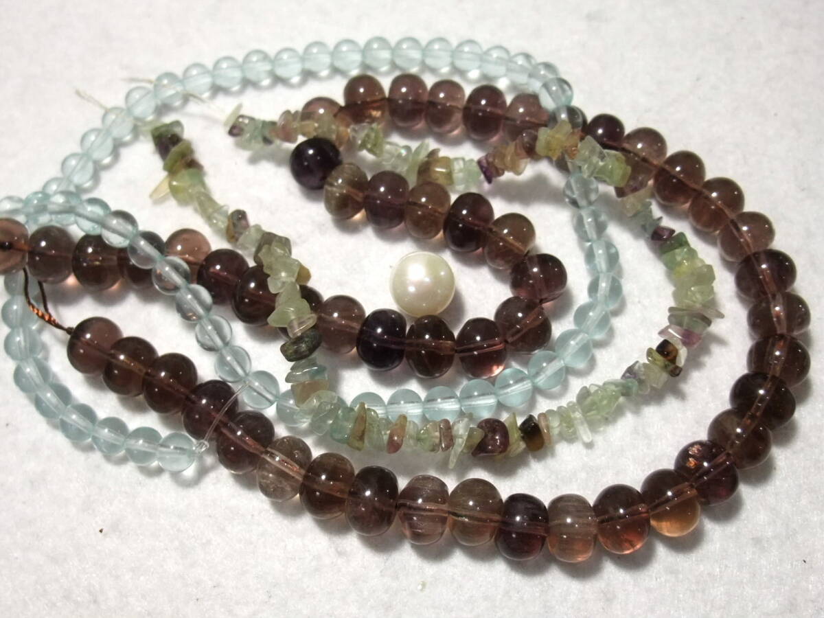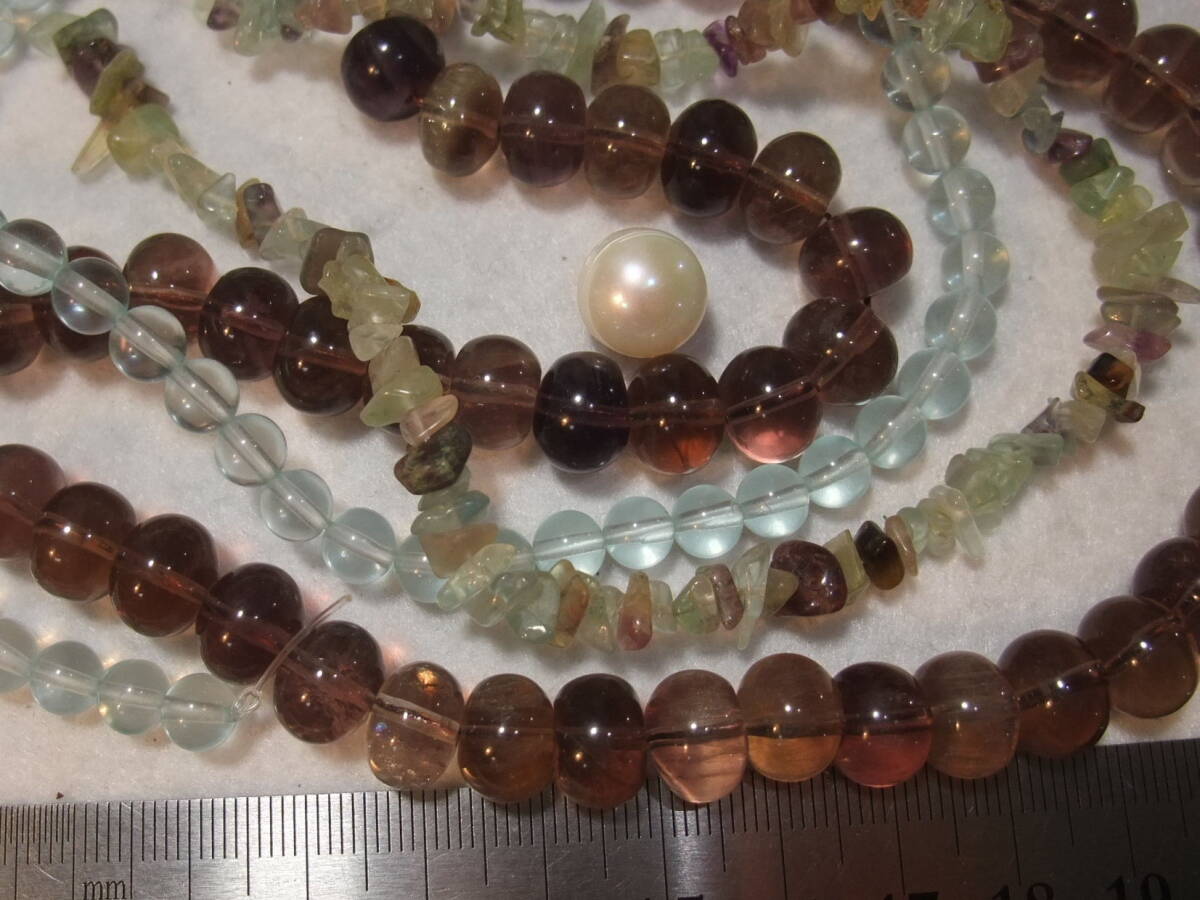 綺麗!人気フローライト蛍石バイカラーも♪大粒淡水パールpearlとビンテージグラスビーズおまとめお得セット 4 お守り魔除け厄除け 125-7