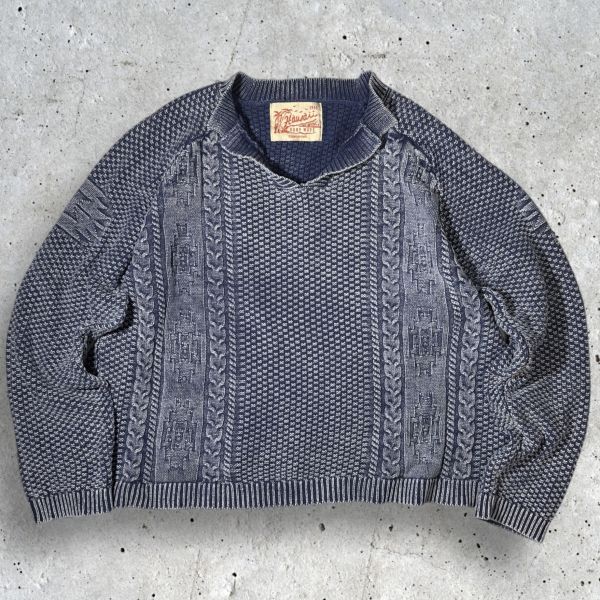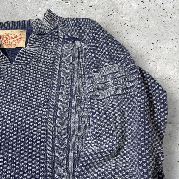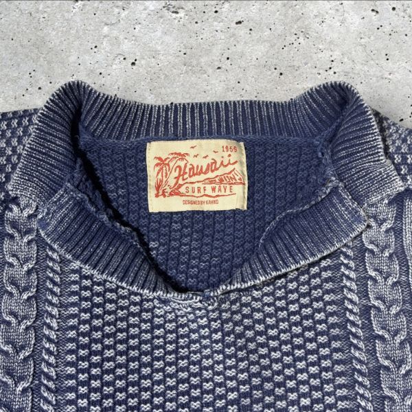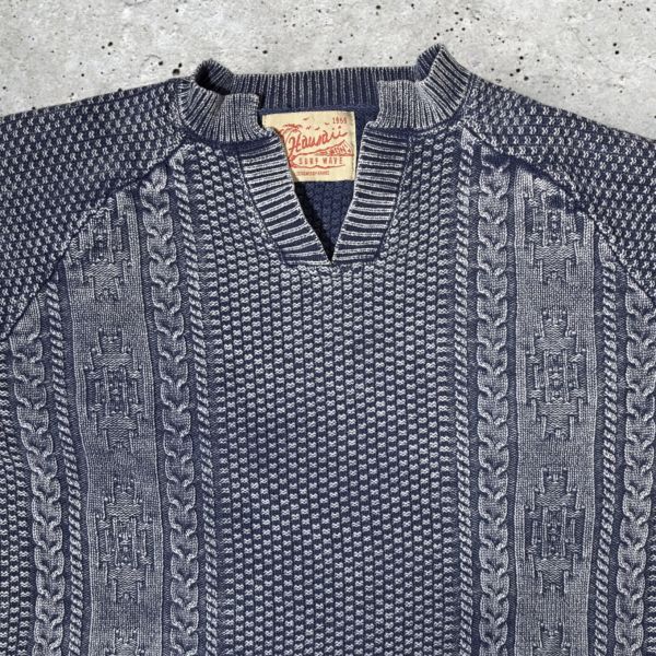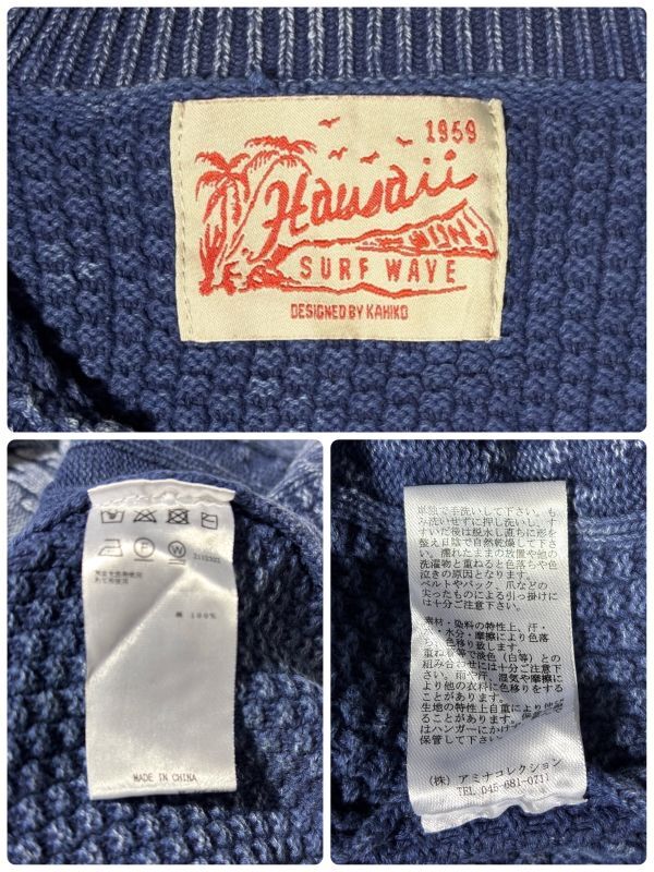 ★kahiko★Hawaii SURF WAVE ニット セーター カラニ チャイハネ sizeM相当 インディゴ系 ショート丈 ラグランスリーブ カヒコ 古着 クリーニング プレス済み sn253