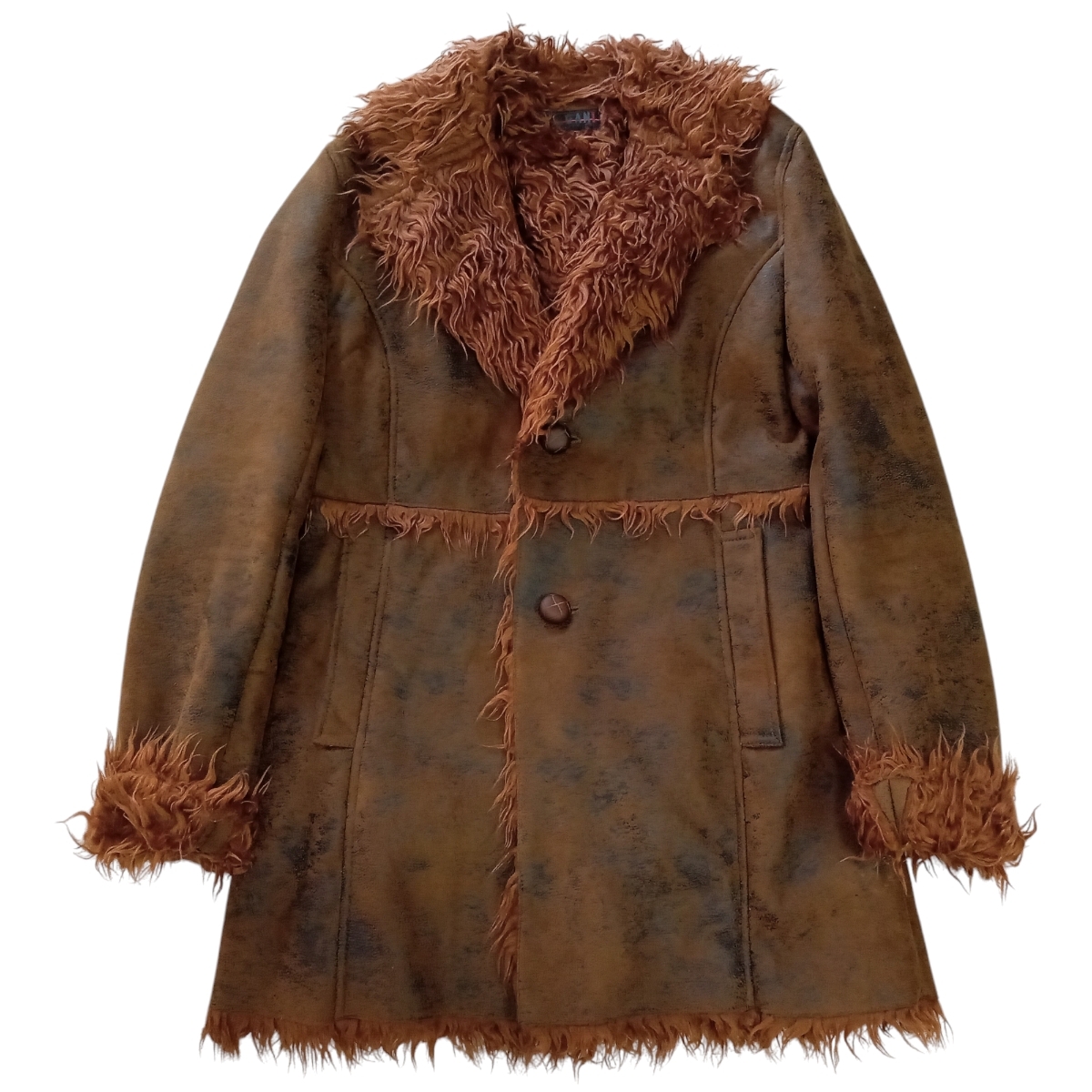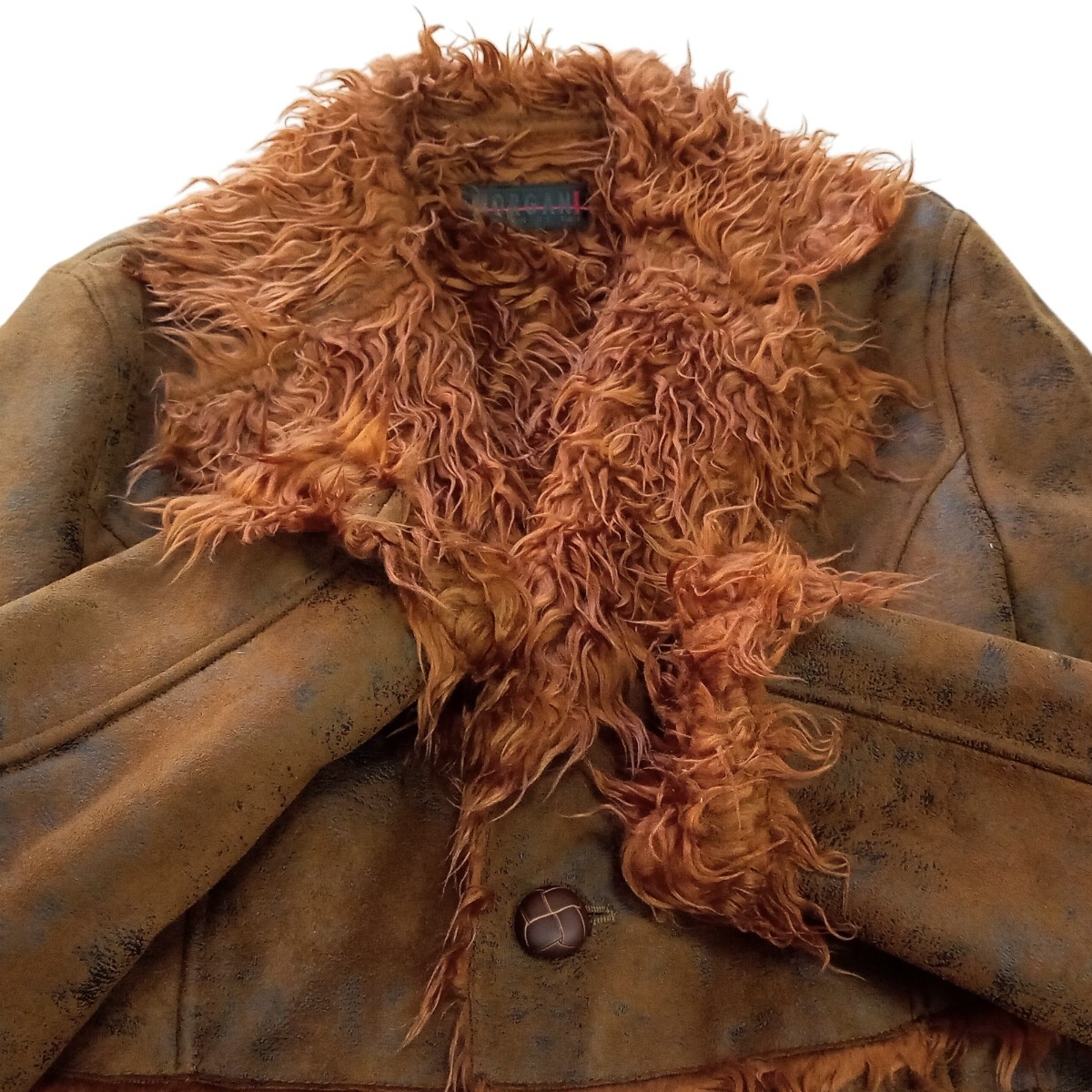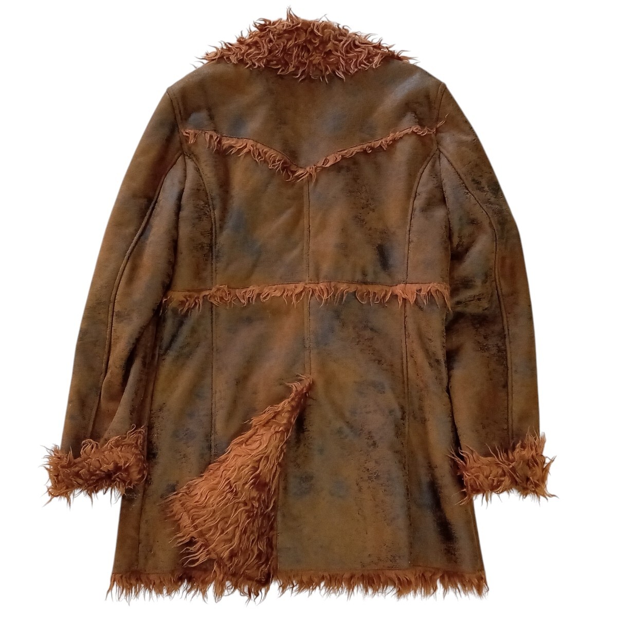 即決★MORGAN HOMME モルガンオム フェイクムートン ファー ジャケット コート S ブラウン系 ヴィンテージ加工【送料無料】