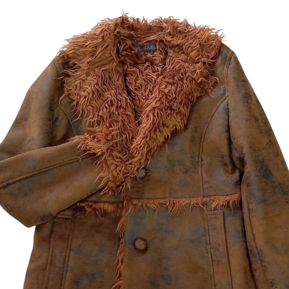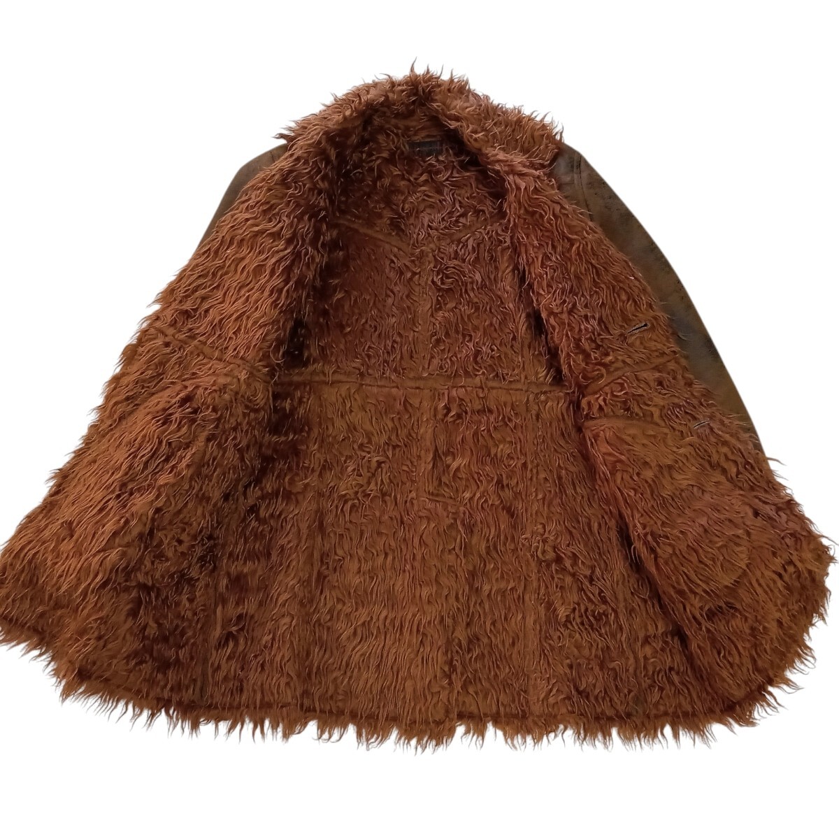 【MORGAN HOMME モルガンオム フェイクムートン ファー ジャケット コート S ブラウン系 ヴィンテージ加工】