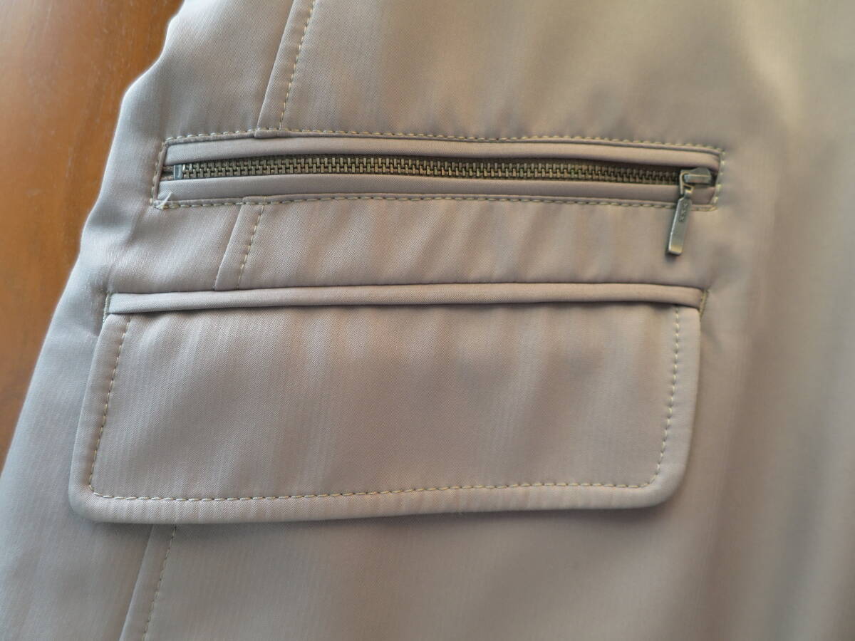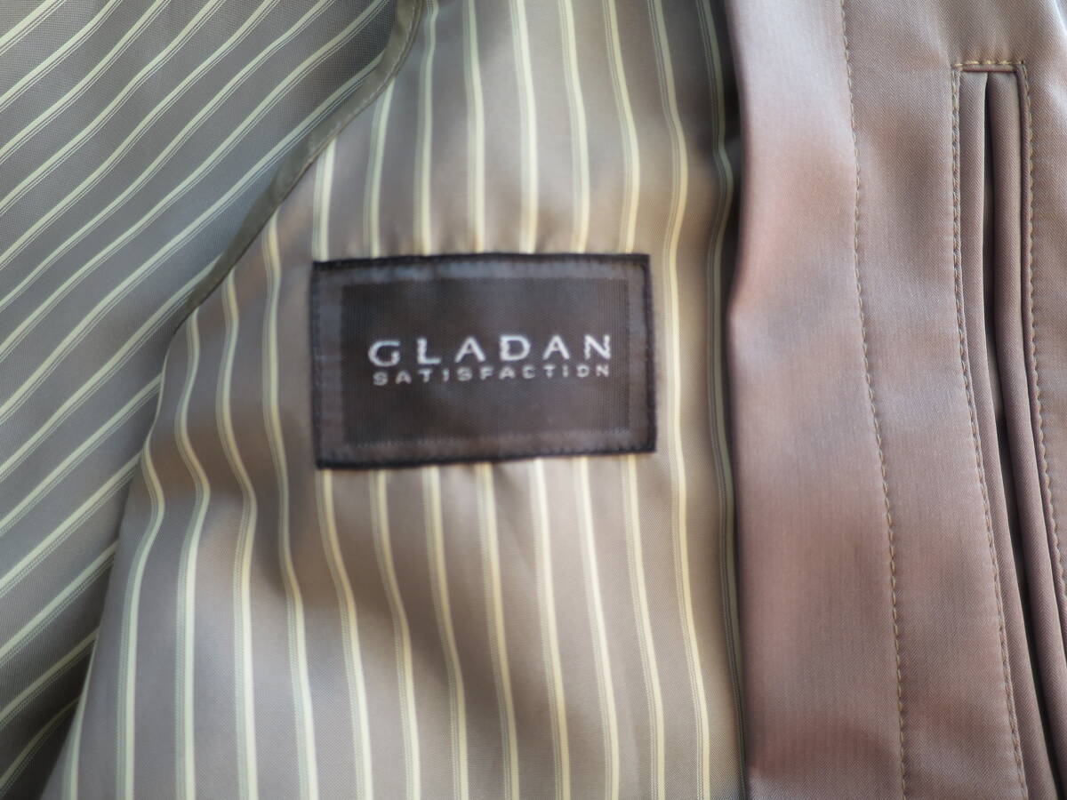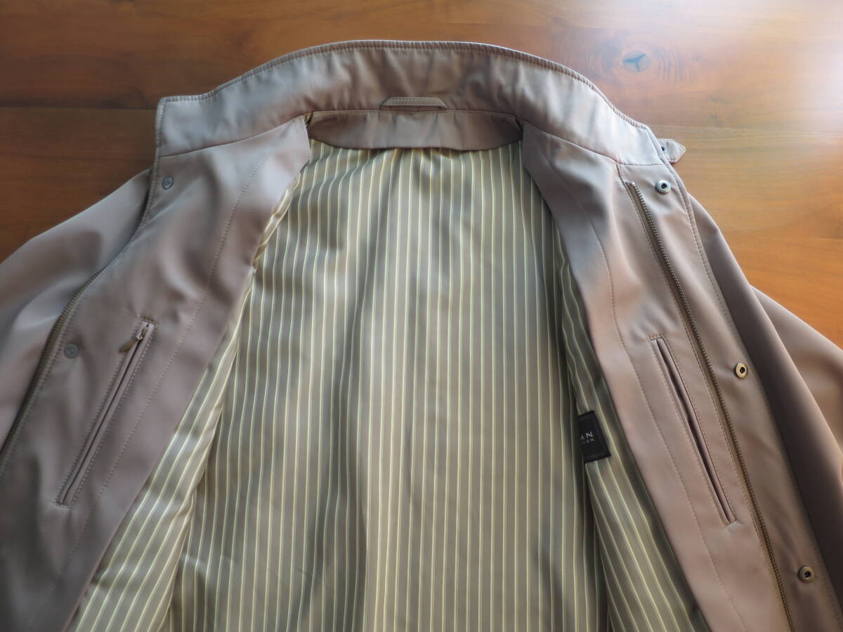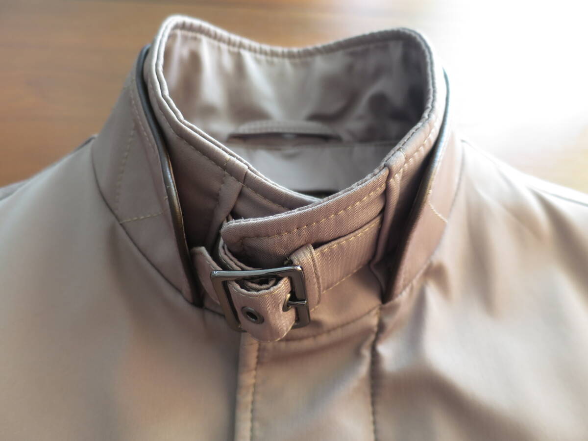 Gladanのスタンドカラーのビジネスコート(ベージュ)です。