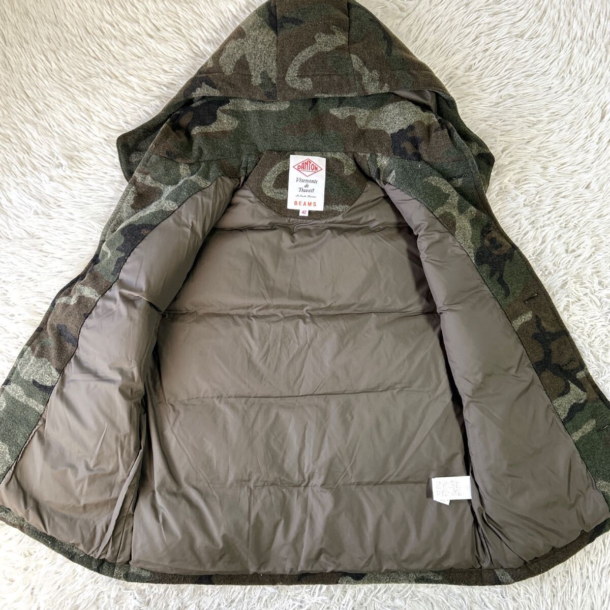 【サイズ42 DANTON × BEAMS】コラボ ウールモッサ ダウンベスト フード脱着可能 迷彩 カモフラ 42 ビームス/ダントン