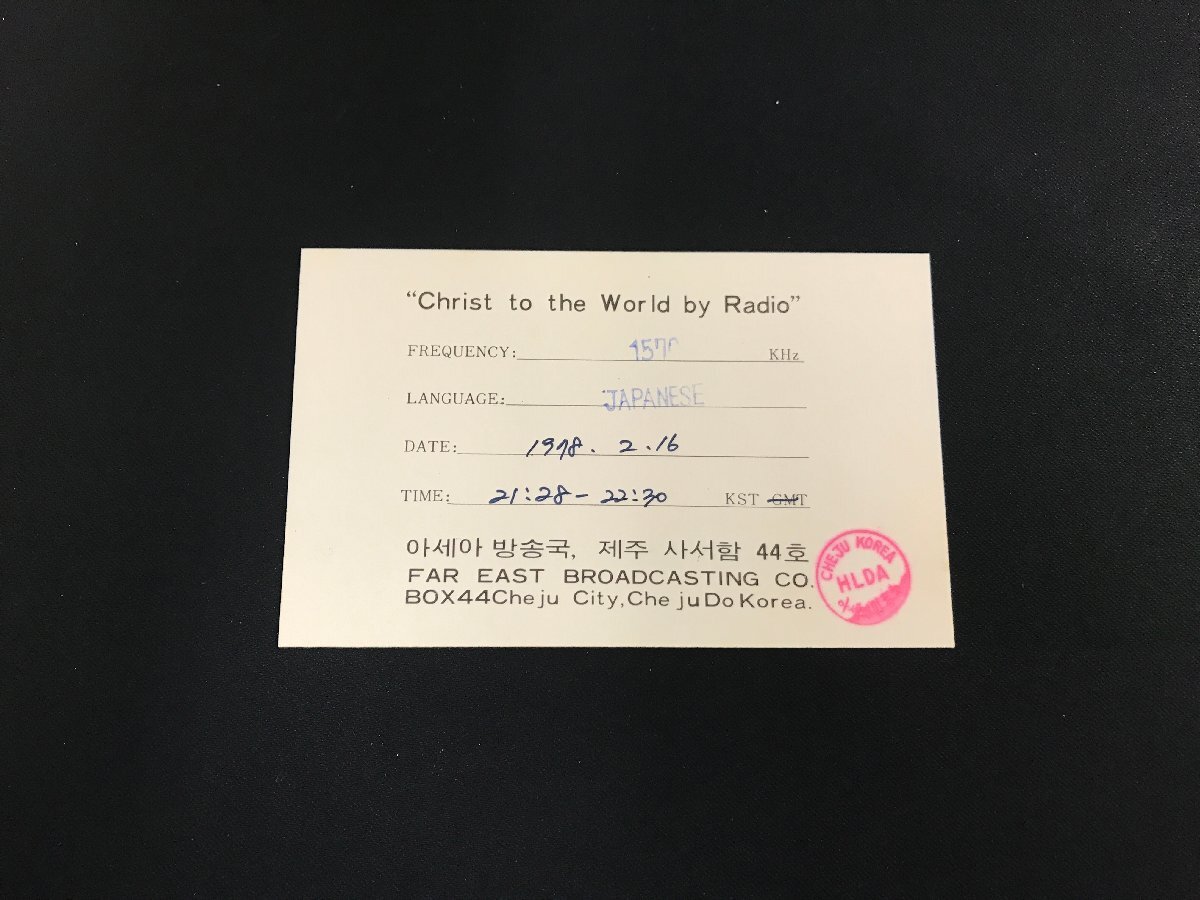 | ■商品名:ベリカード ■放送局:FAR EAST BROADCASTING CO. ■放送国:韓国 ■年代:1970年代 ※出品商品は画像に写るものが全てとなります。 ※ハンガーやスタンド等、当店の備品を用いて撮影を行う場合がございますが、備品は付属いたしません。 | ||