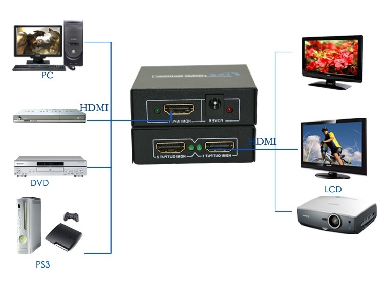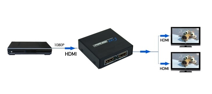 | HDMI分配器/スプリッター 1入力 to 2出力 メス-メス 3D V1.3b 1080P |