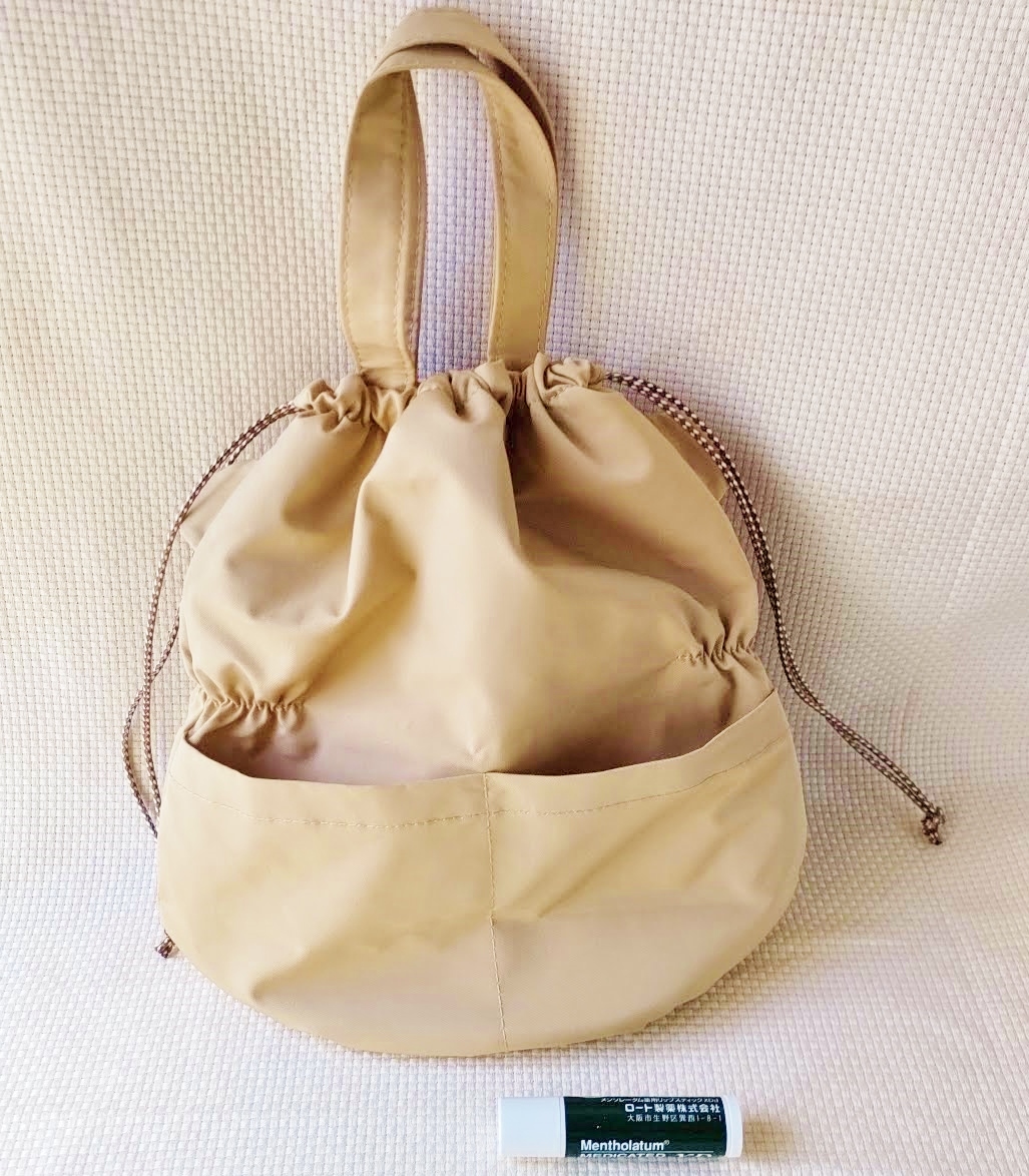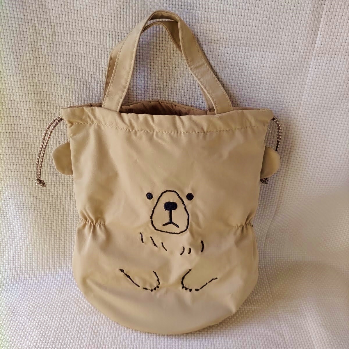 リュシー 巾着バッグ 熊 ベージュ/トートバッグ ハンドバッグ ベアー ベア 取手付 お散歩バッグ バッグ ランチバッグ ポーチ ミニバッグ