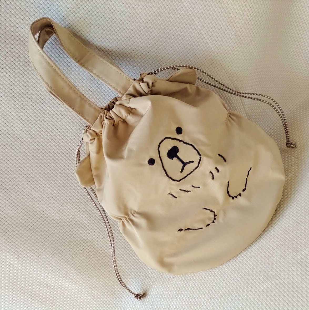 ◆【リュシー 巾着バッグ 熊 ベージュ】