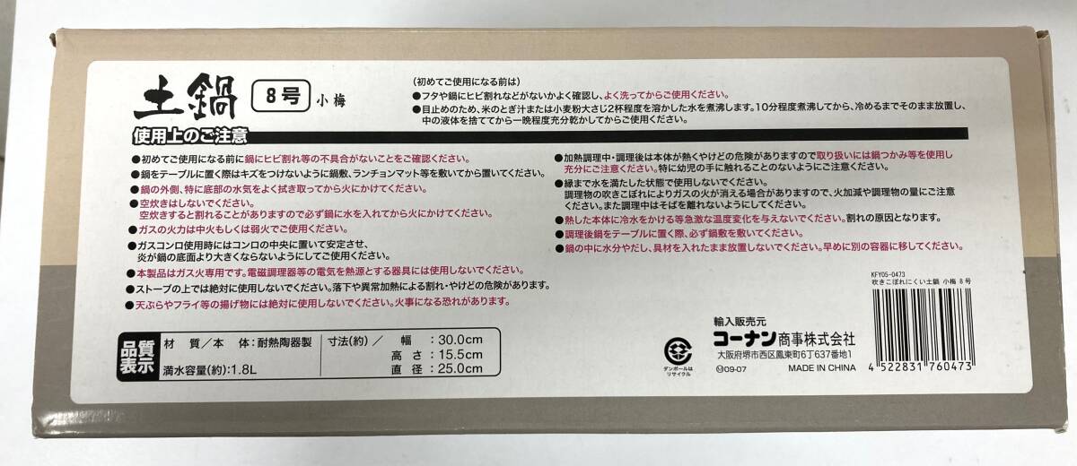 | #8330 直火専用 土鍋 小梅 3~4人用 8号 中古品 | ||
