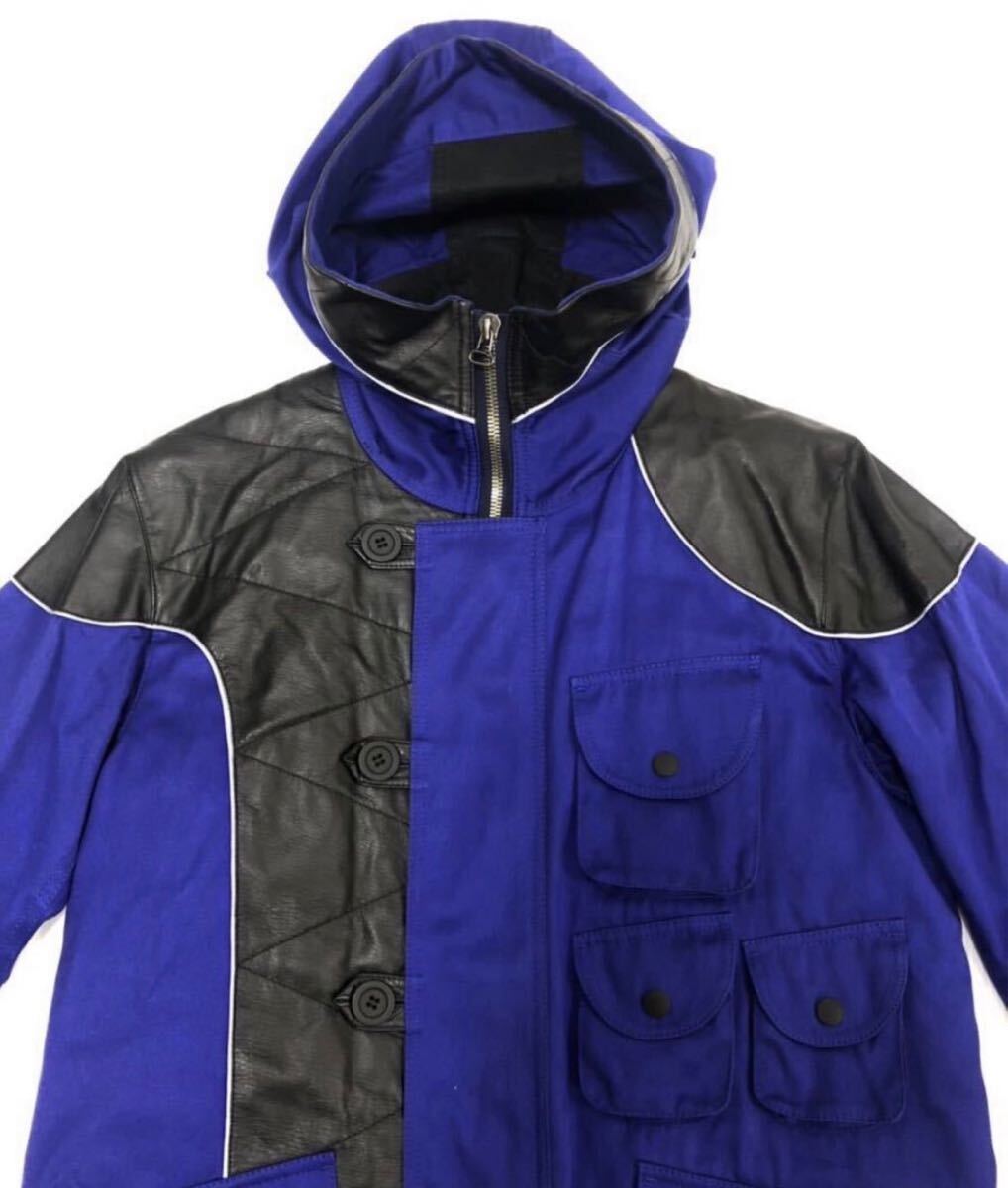 ライナー取外し可 メッシュ×本革 レザー パッチワーク デザイン フーディー ロングコート になり使い勝手もよく大変格好いいです