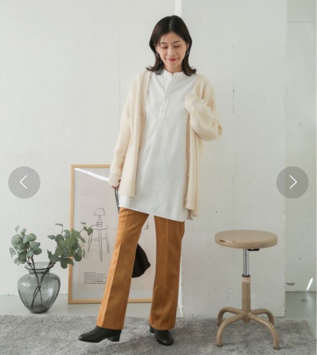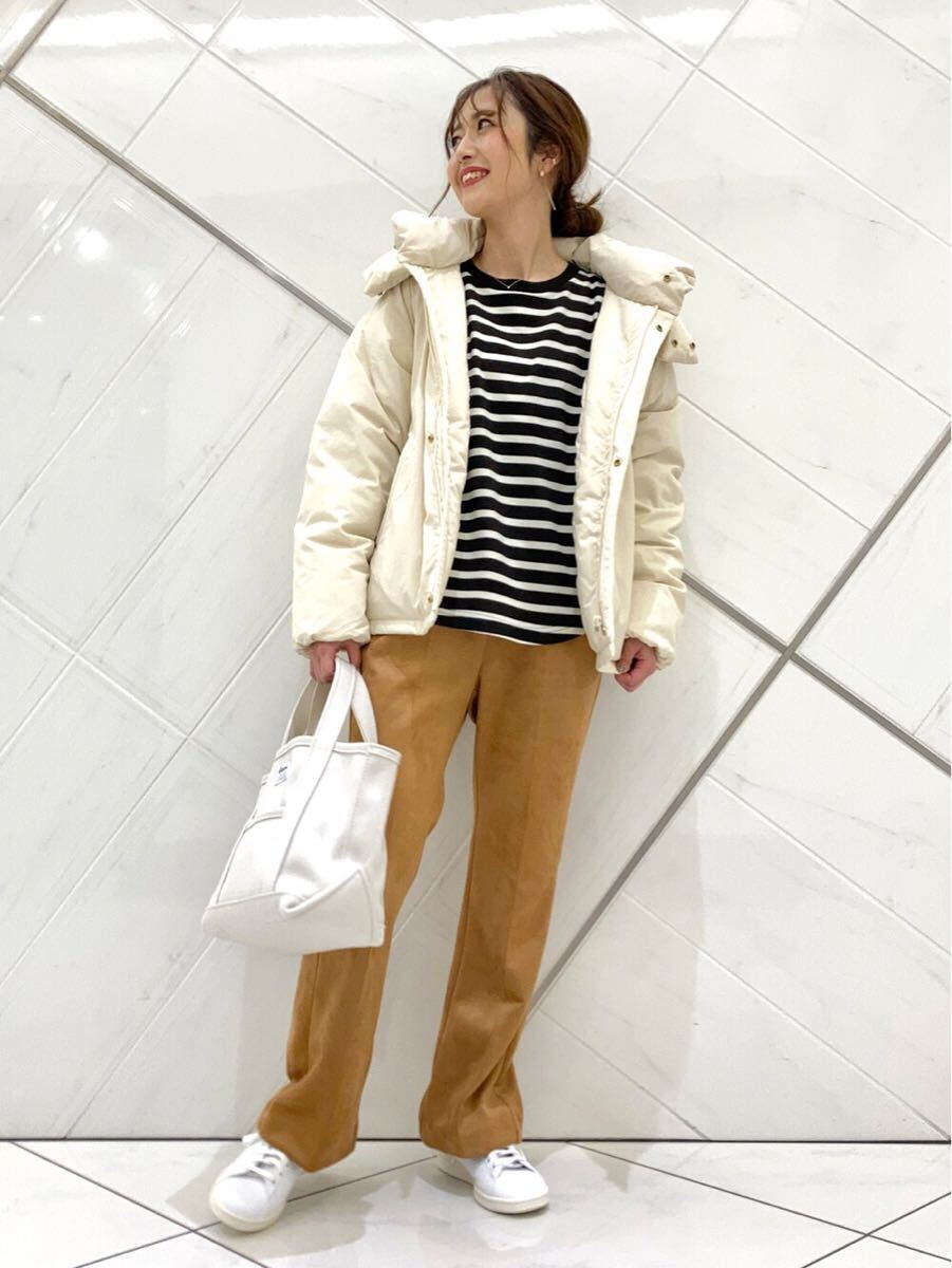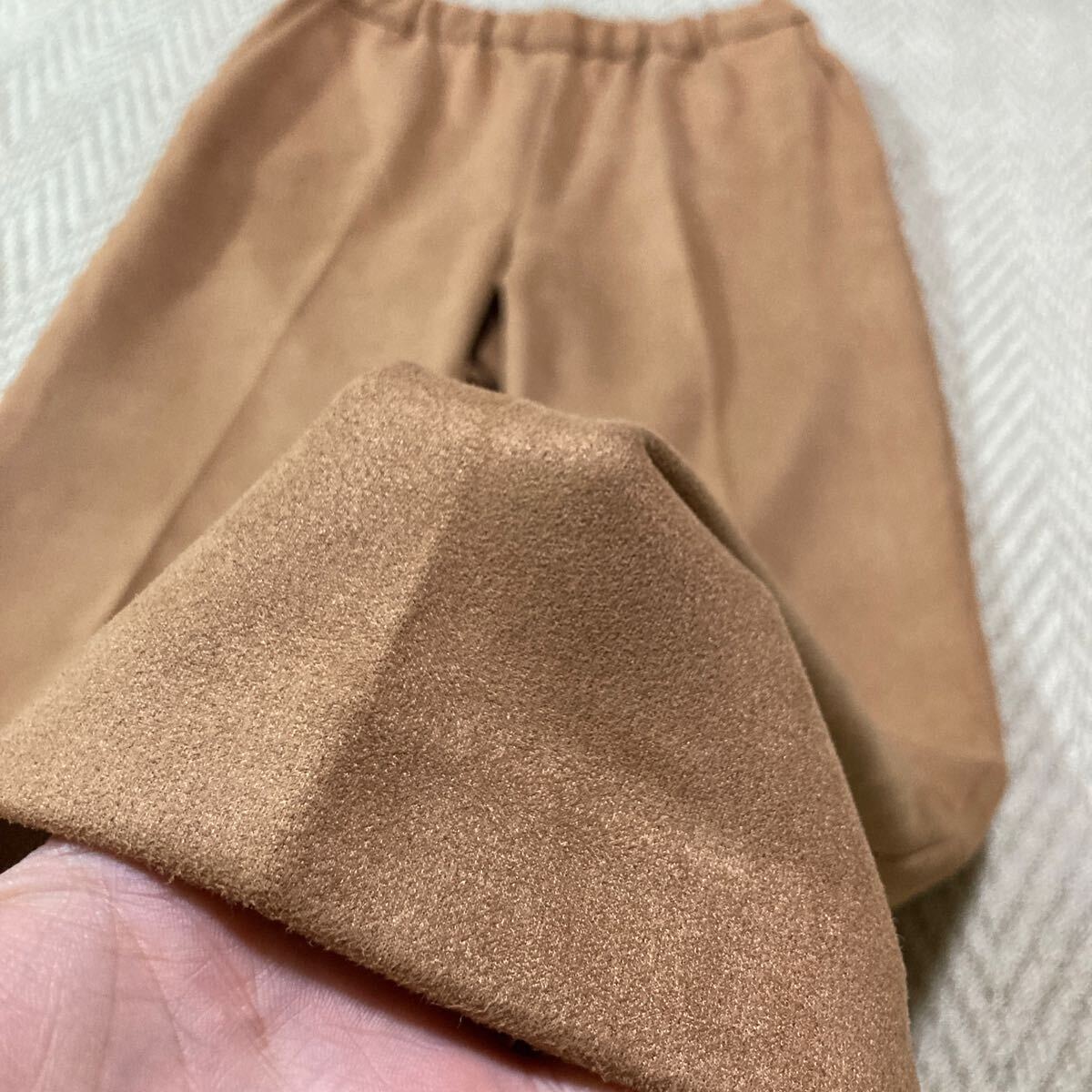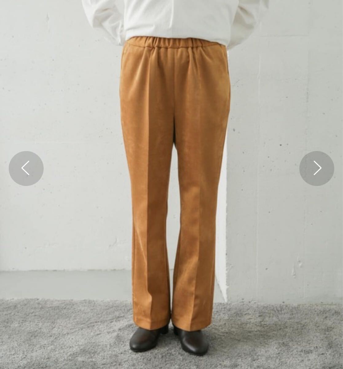 明るめのキャメルブラウンできれい見えするスエードパンツです