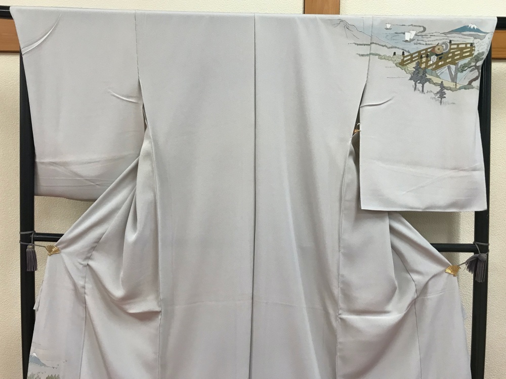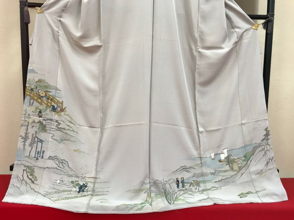 訪問着 1-82080 薄グレー系 十日町友禅 東海道五十三次 浜ちりめん
