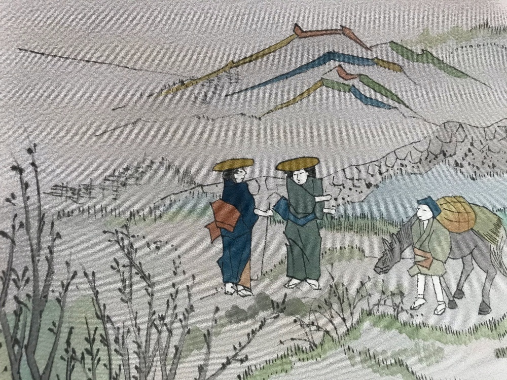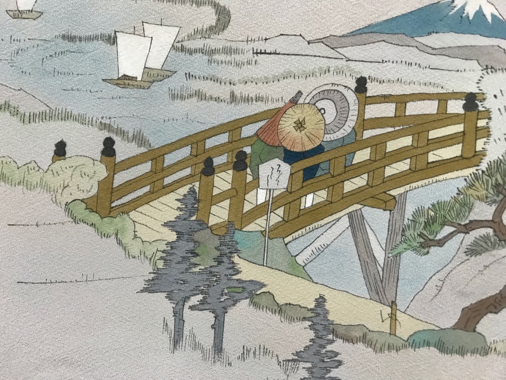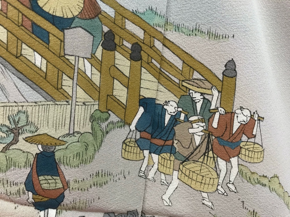 訪問着 1-82080 薄グレー系 十日町友禅 東海道五十三次 浜ちりめん 未仕立て