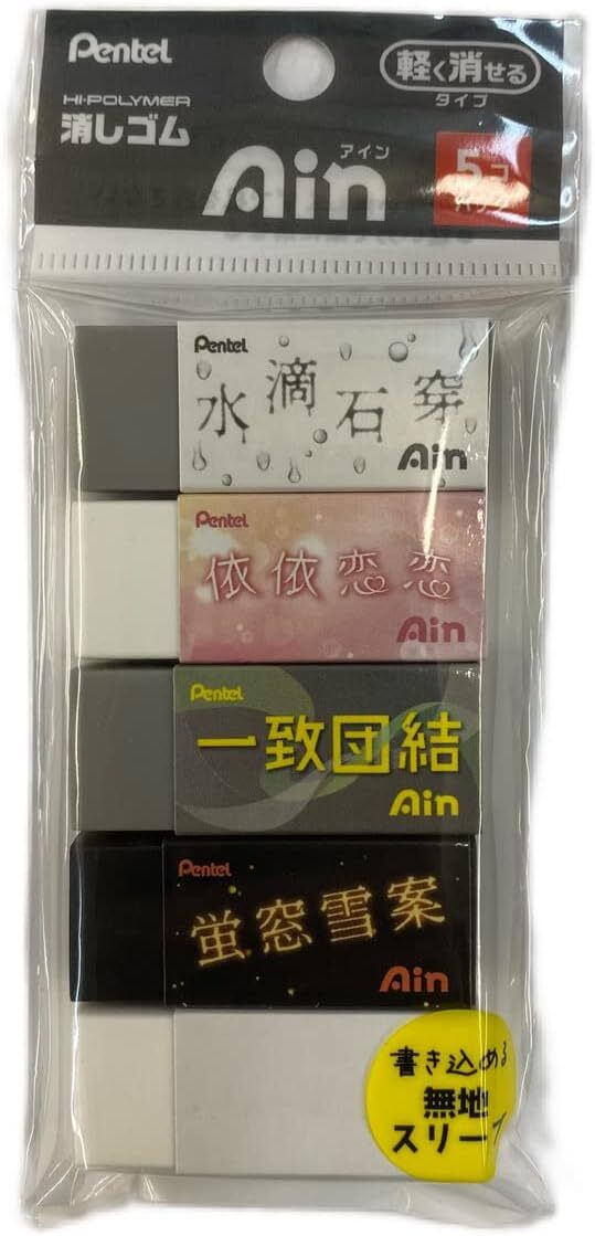 ぺんてる [限定] 消しゴム アイン 四字熟語 5個パック XZEAH065STL (モノクロ消しゴム)