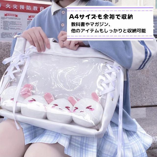 短い文章: 透明カバーに好きなアイテムをディスプレイ。自分だけのスタイルを創り上げ、個性を表現する痛バッグをお楽しみください。