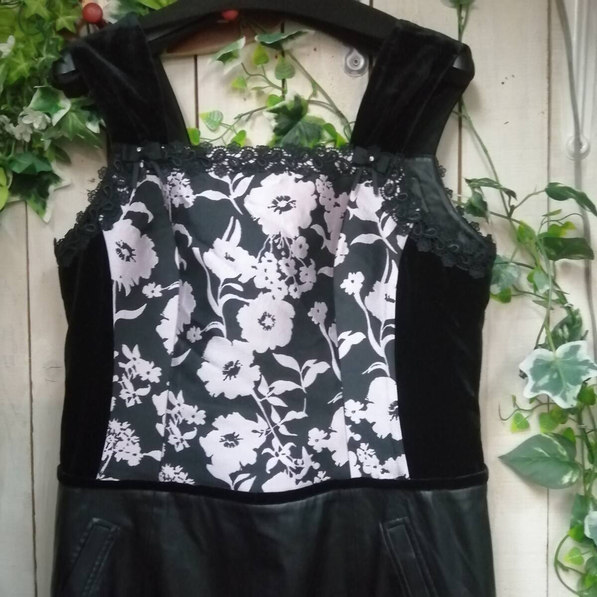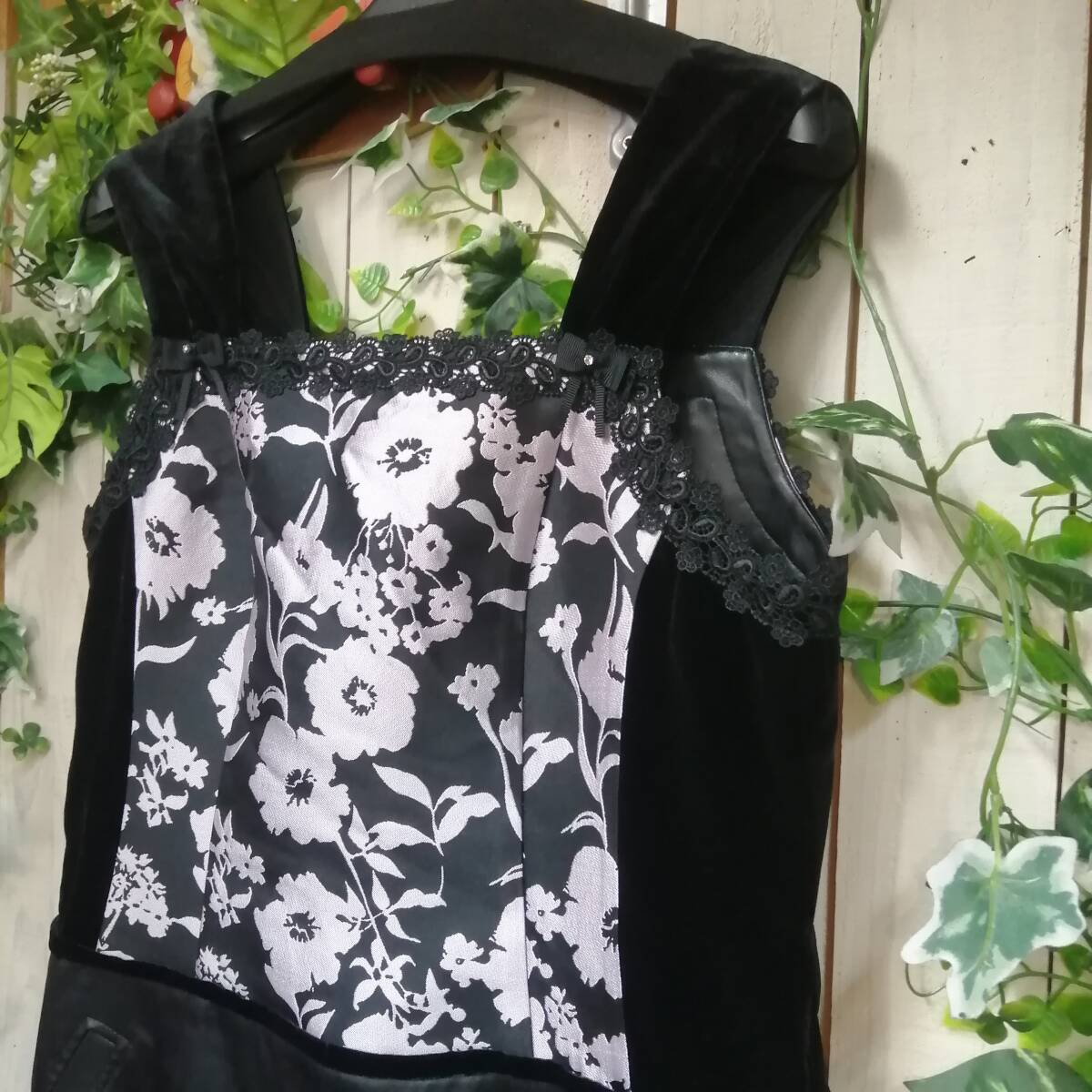 FW04925ー3*新品*スーパービューティー*花柄プリント*レース使い*デザインワンピース*ポケット付き*黒*サイズ? 可愛い