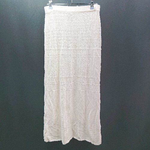 ◇ ◎ SIMPLICITE 総レース ラミー綿混合生地 上品 透け感 ロング タイト スカート サイズF アイボリー レディース E