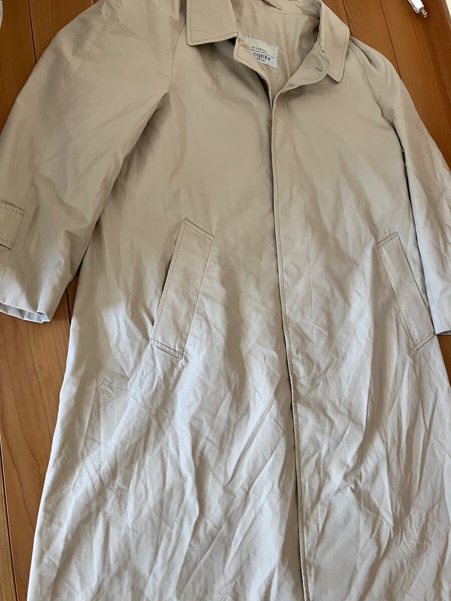 アクアスキュータム アクア5 ステンカラーコートです。タグからおそらく80-90年代あたりかと思います。生地は薄めで春先に使えそうです。ベージュ系なので服にも合わせやすいコートです、お早めに。