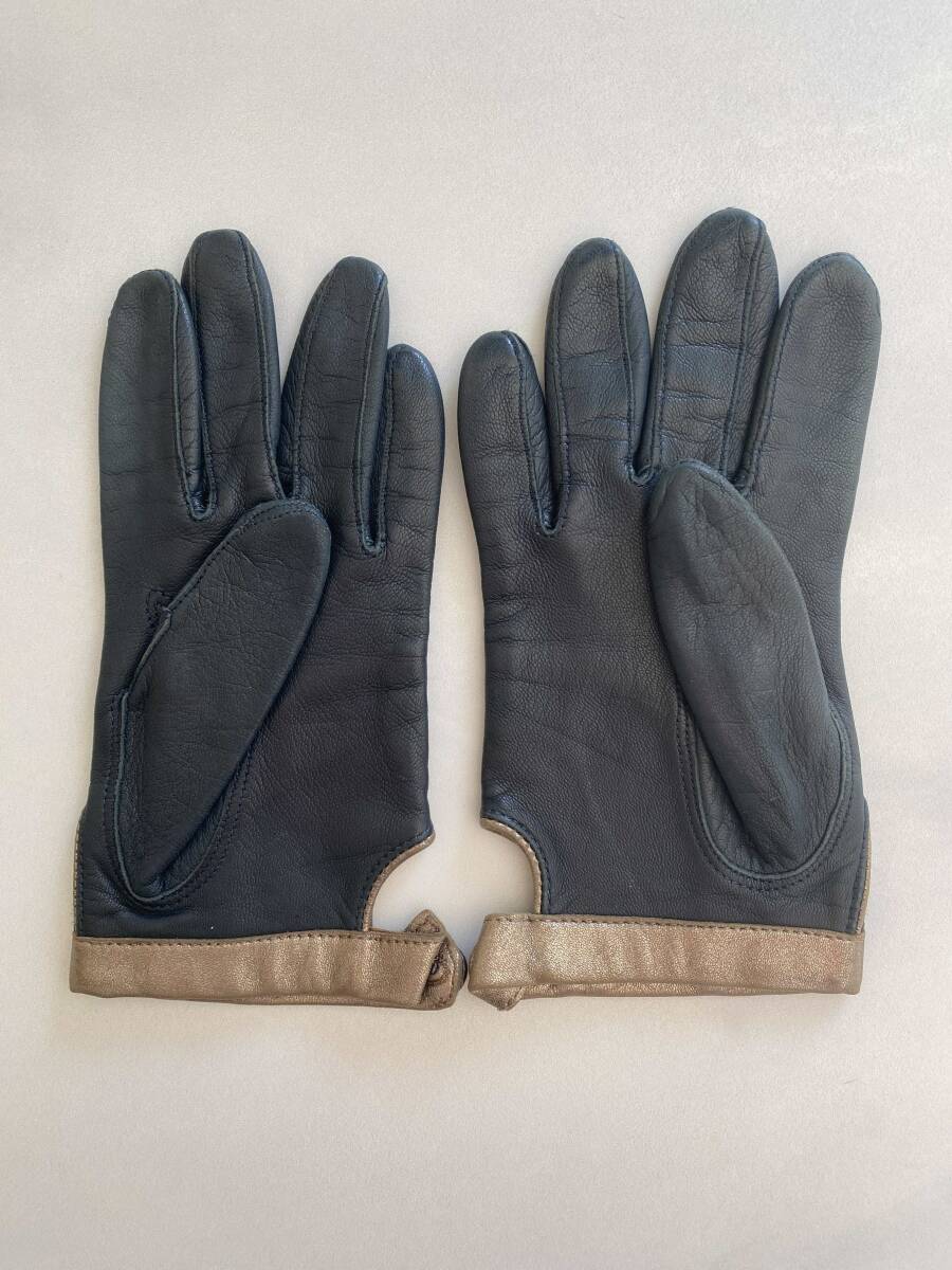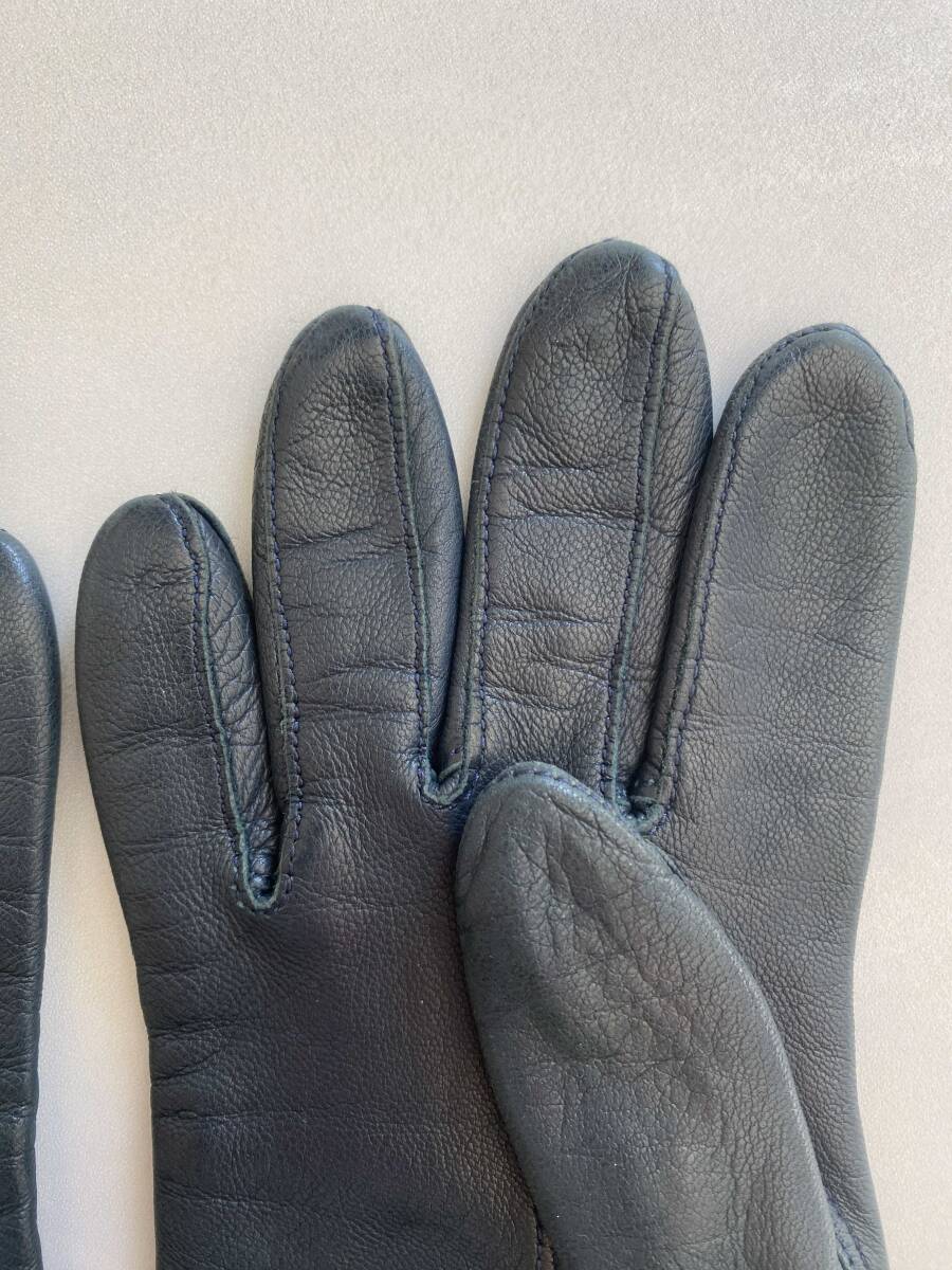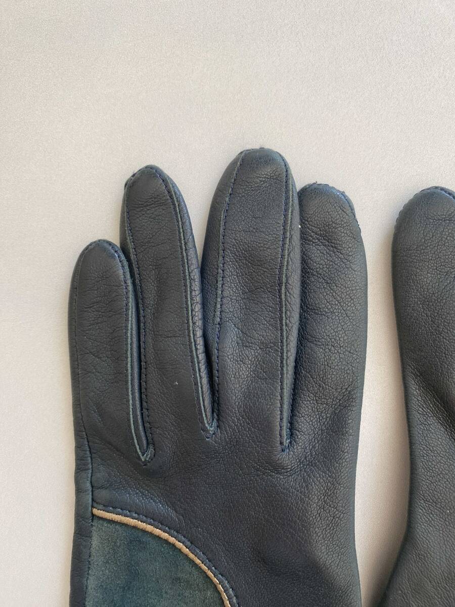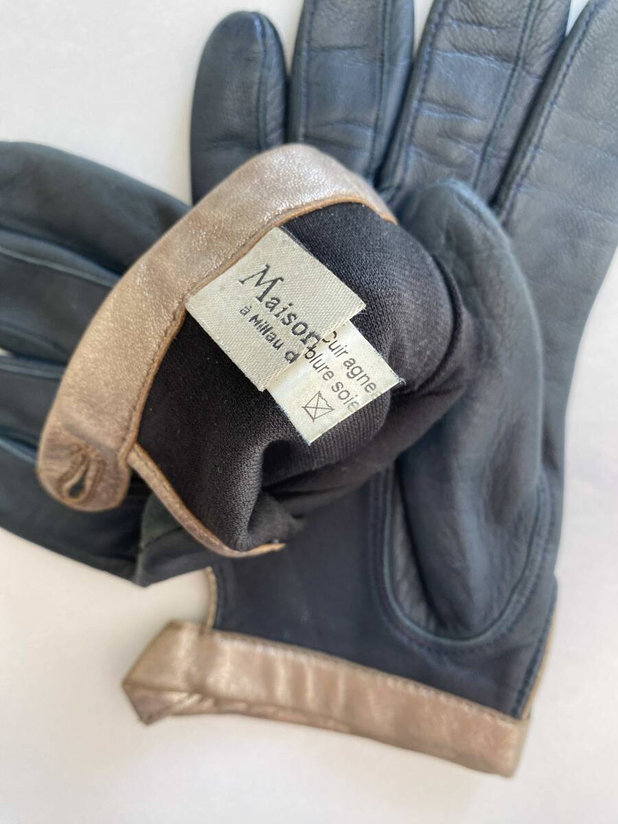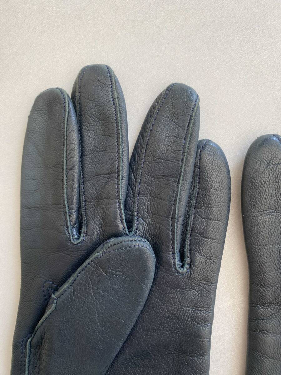 【美品】フランス製 メゾンファーブル レディース レザーグローブ 革手袋 ネイビー シルク裏地 サイズ7 Maison Fabre