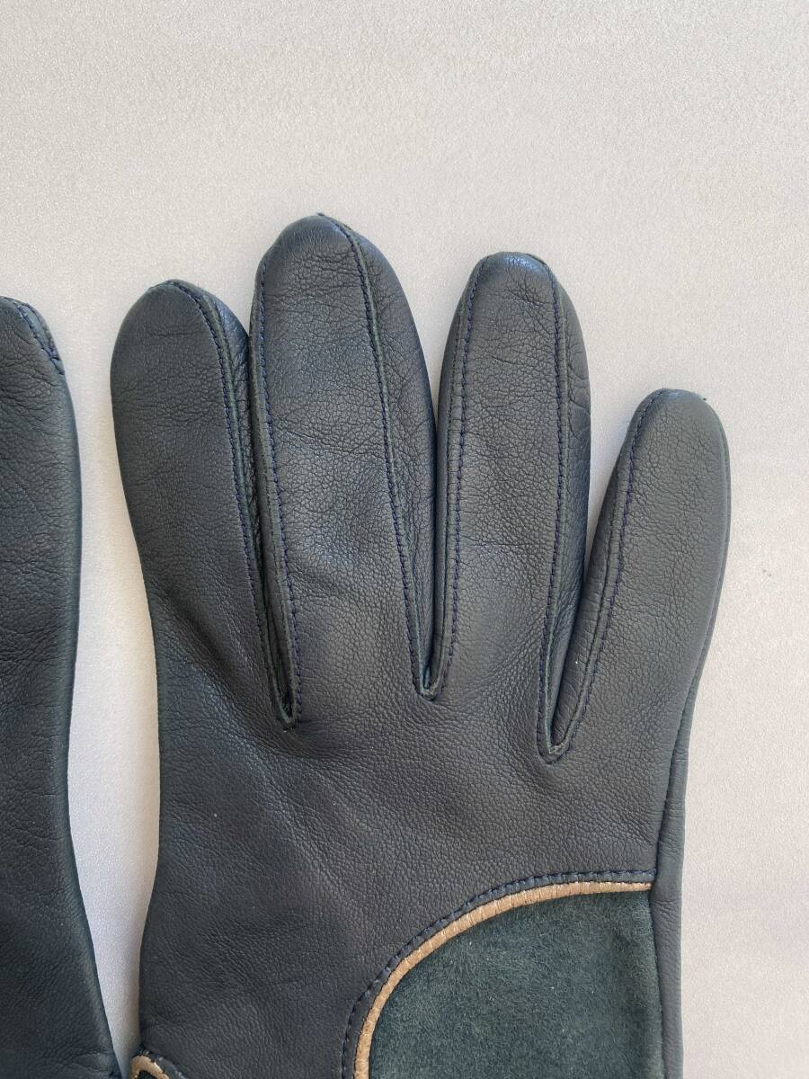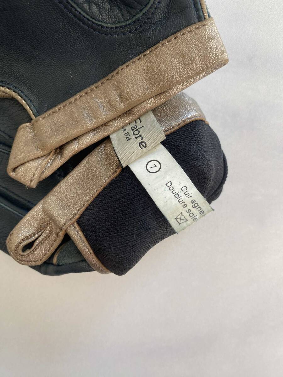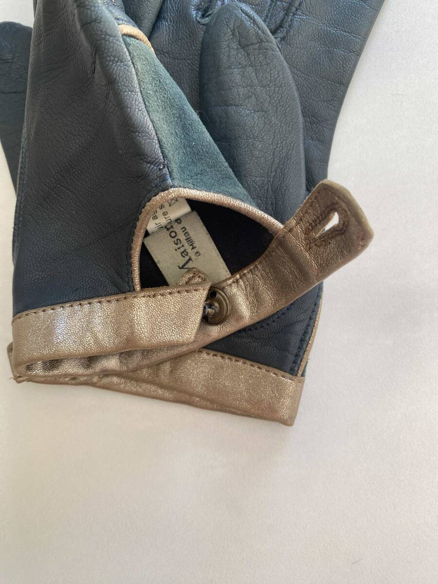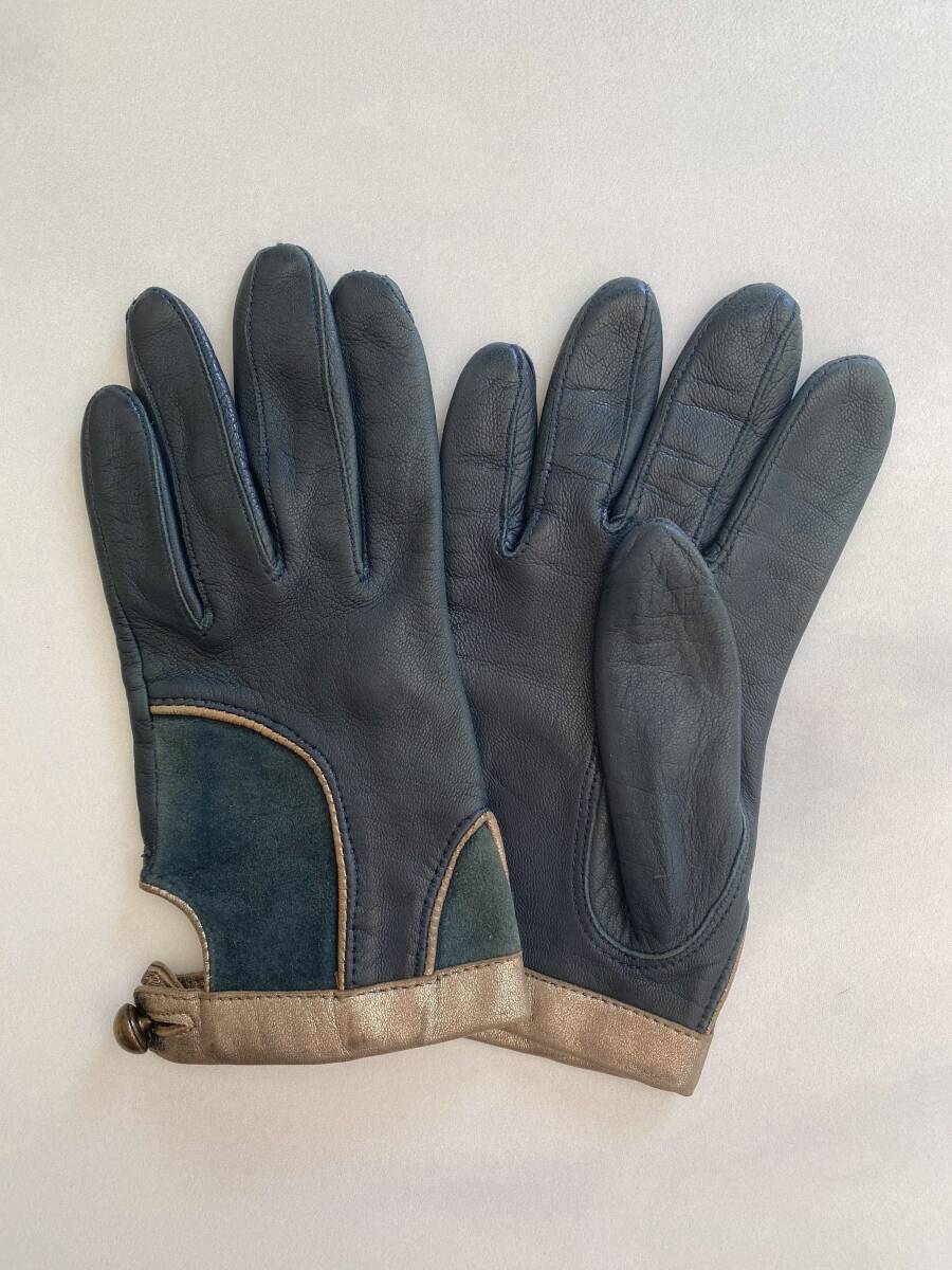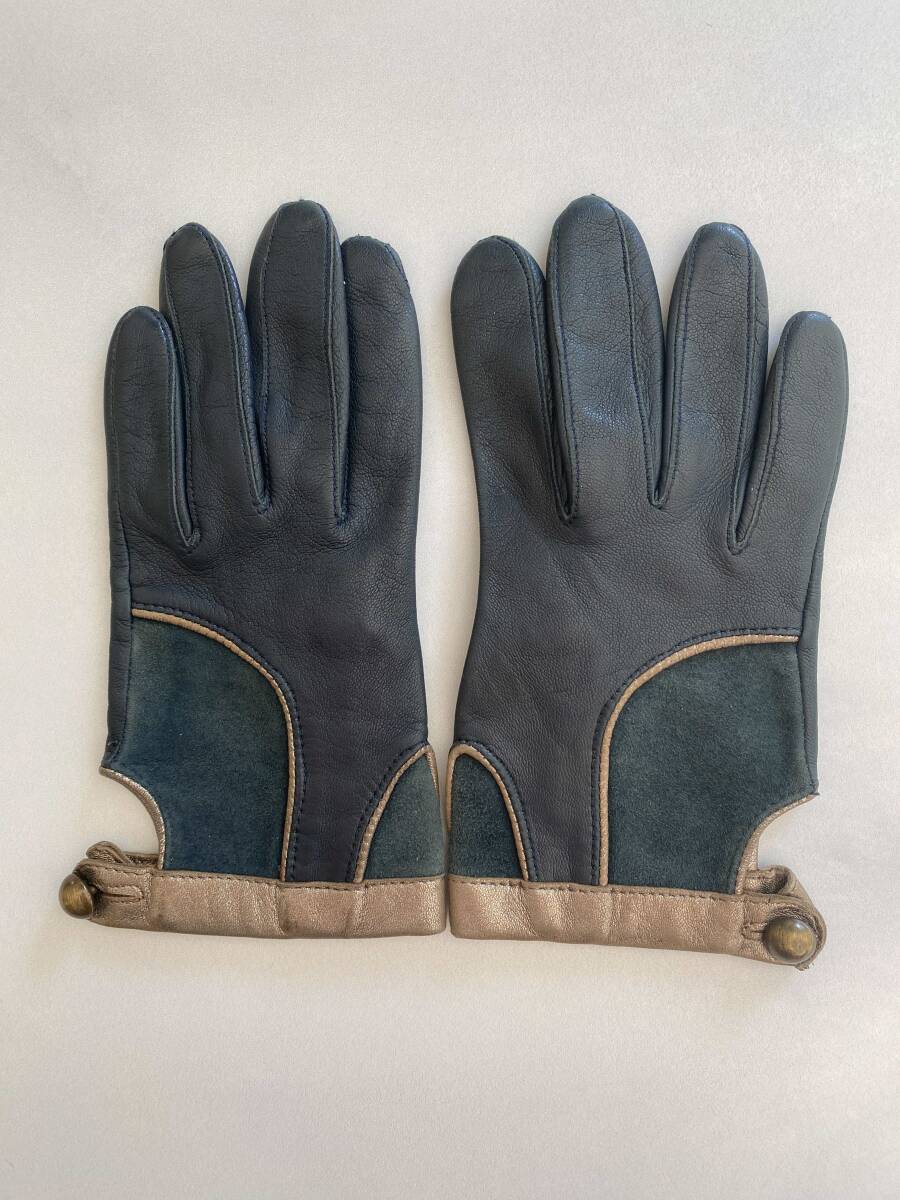 【美品】フランス製 メゾンファーブル レディース レザーグローブ 革手袋 ネイビー シルク裏地 サイズ7 Maison Fabre