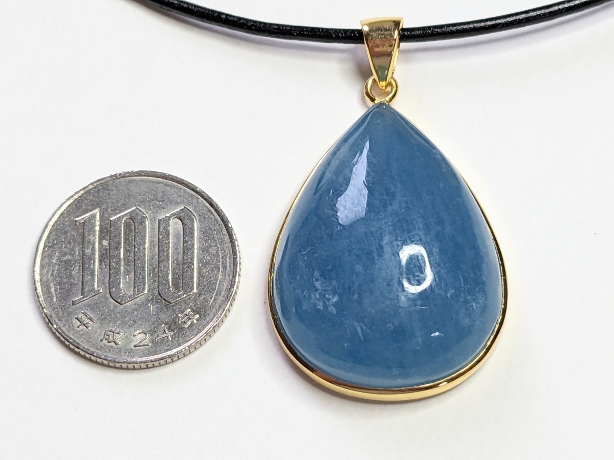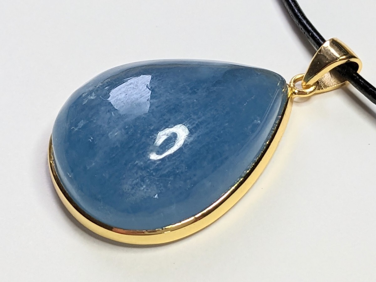 不透明なタイプのアクアマリンで、天然石由来のインクルージョン、傷、色むら等があります。