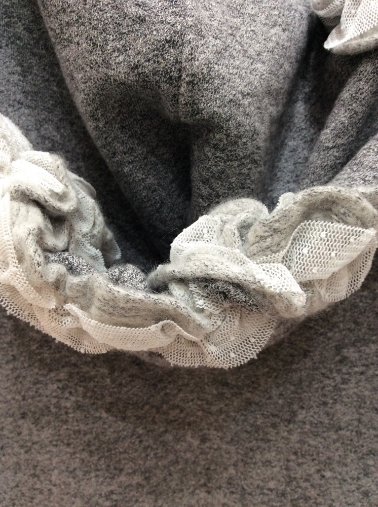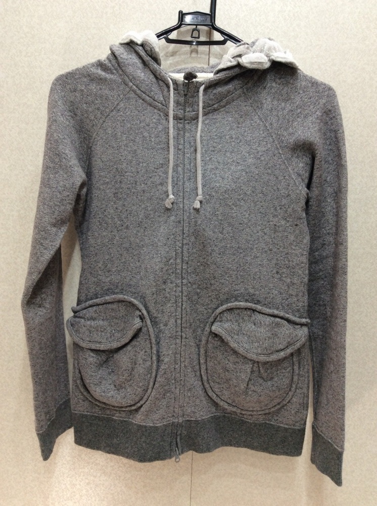 管理番号:124880 sakayori グレー裏起毛ジップアップパーカー フードふちフリル 表示サイズ:36 実寸(参考)