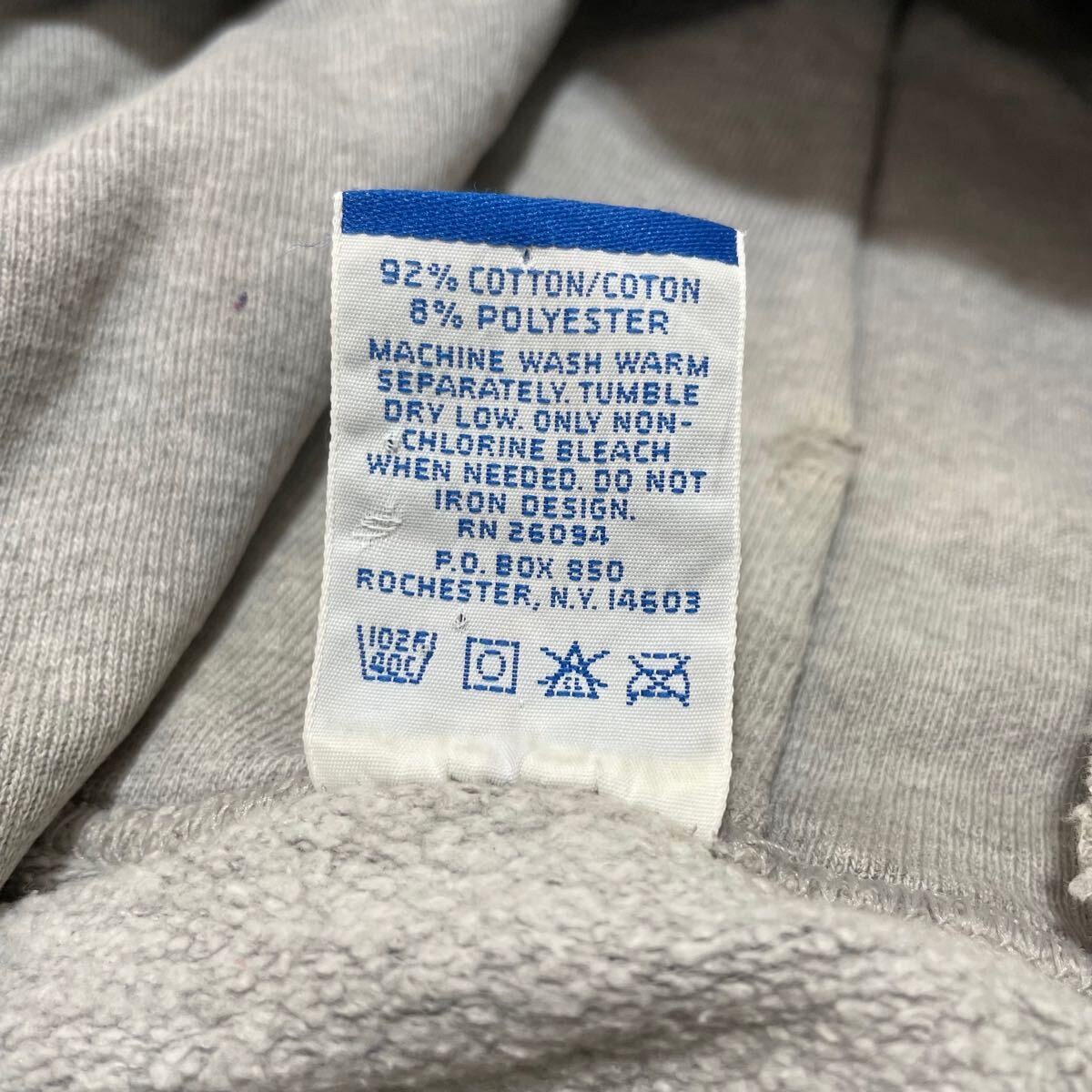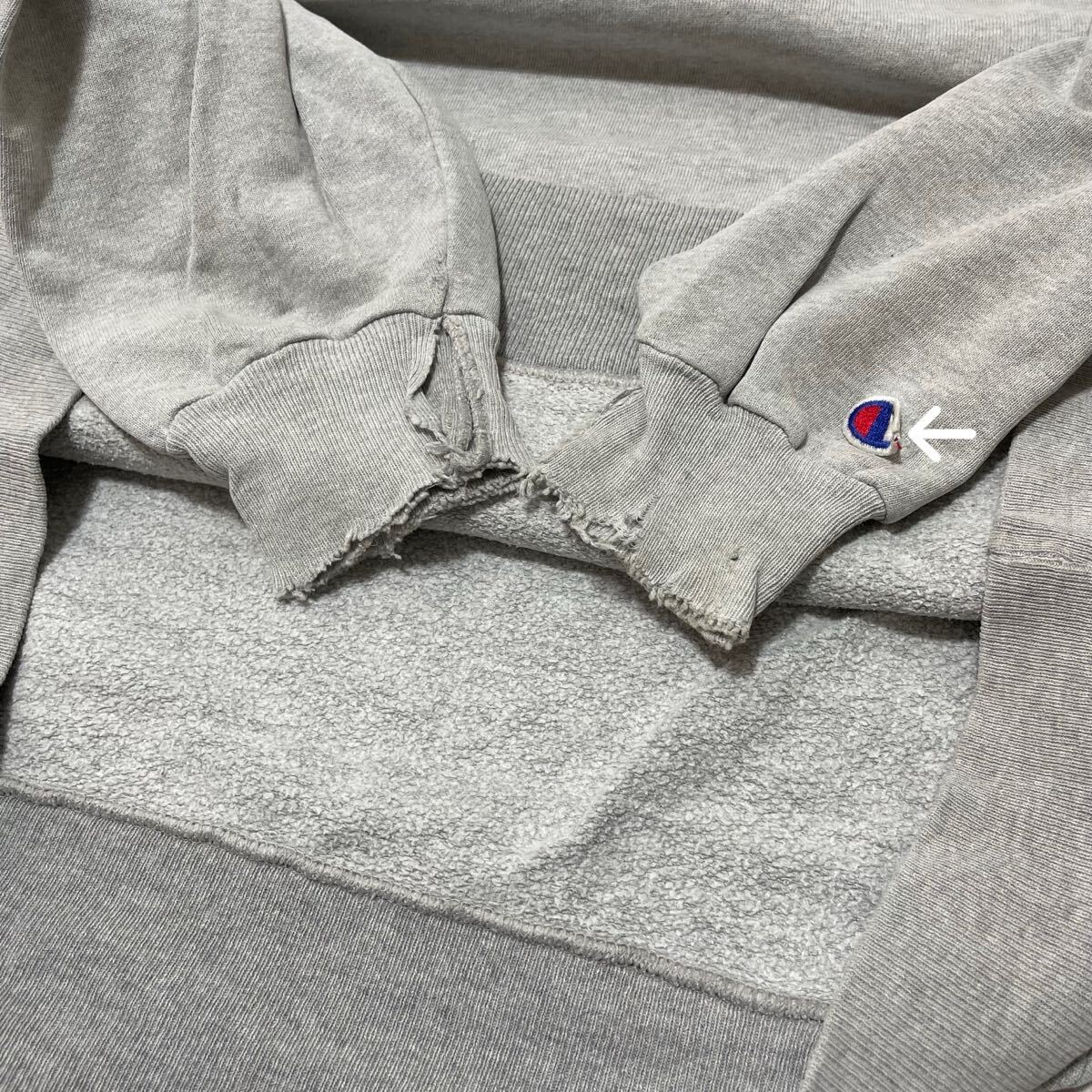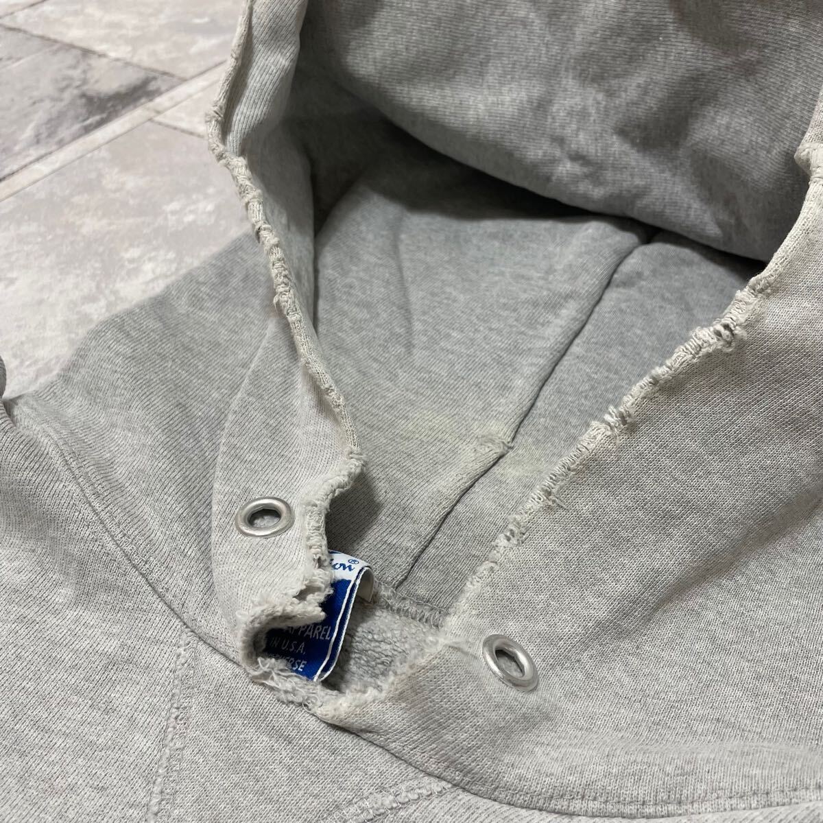 90s USA製 Champion チャンピオン sweat hoodie スウェットパーカーフード プルオーバー 刺繍ロゴ ヴィンテージ Vガゼット グレー サイズXL 玉FL3875
