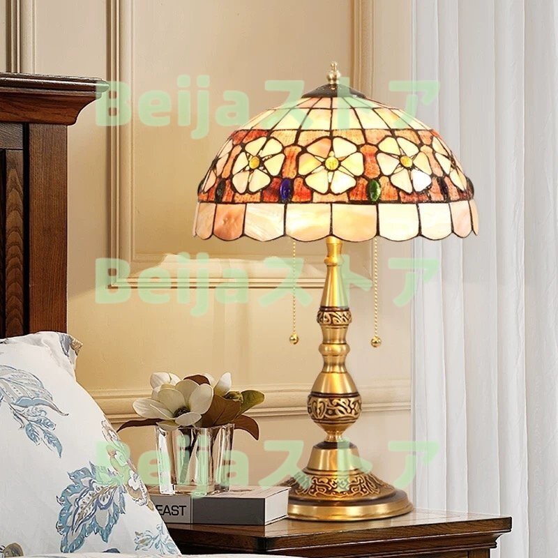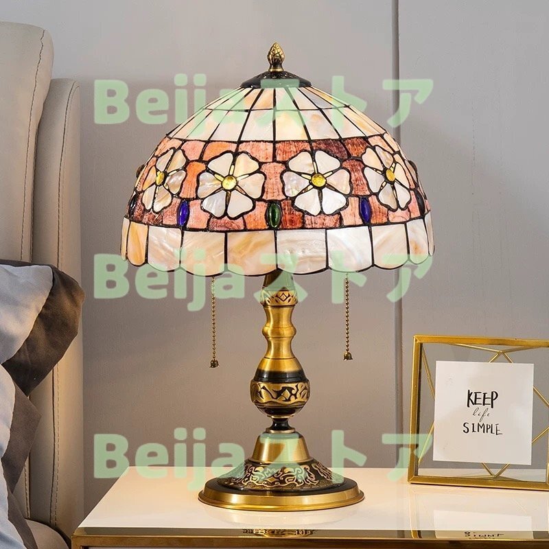 ◆稀少品◆芸術品 貝殻ステンドランプ ステンドグラス アンティーク 花柄 レトロな雰囲気がおしゃれ ティファニー 銅製デスクライト照明