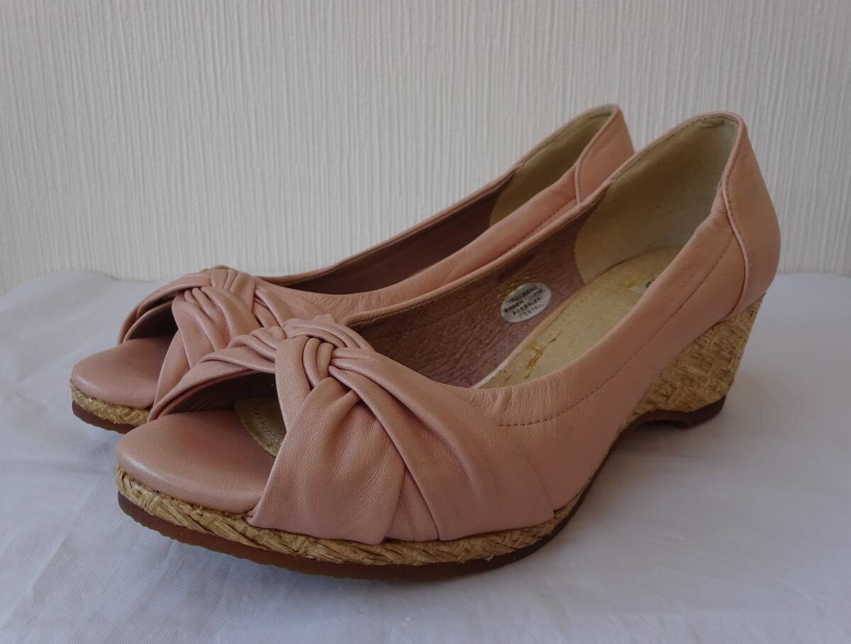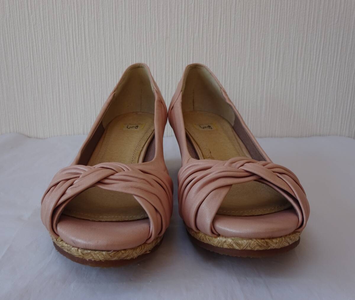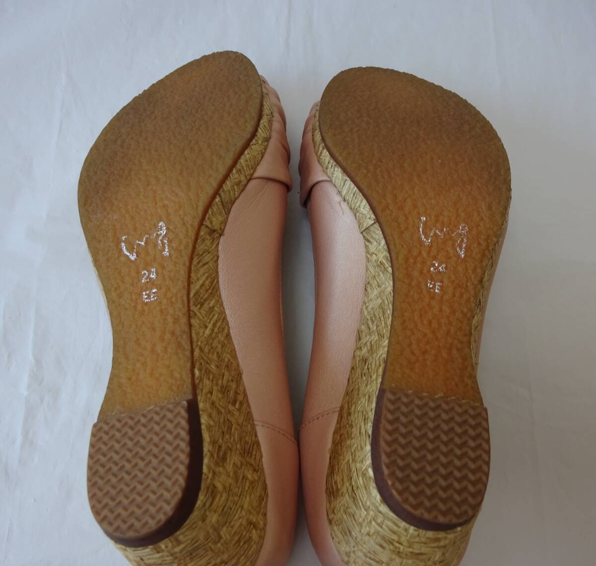 ing ウェッジソール パンプス 24cm EE ピンク オープントウ