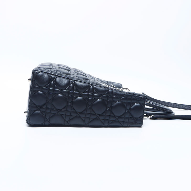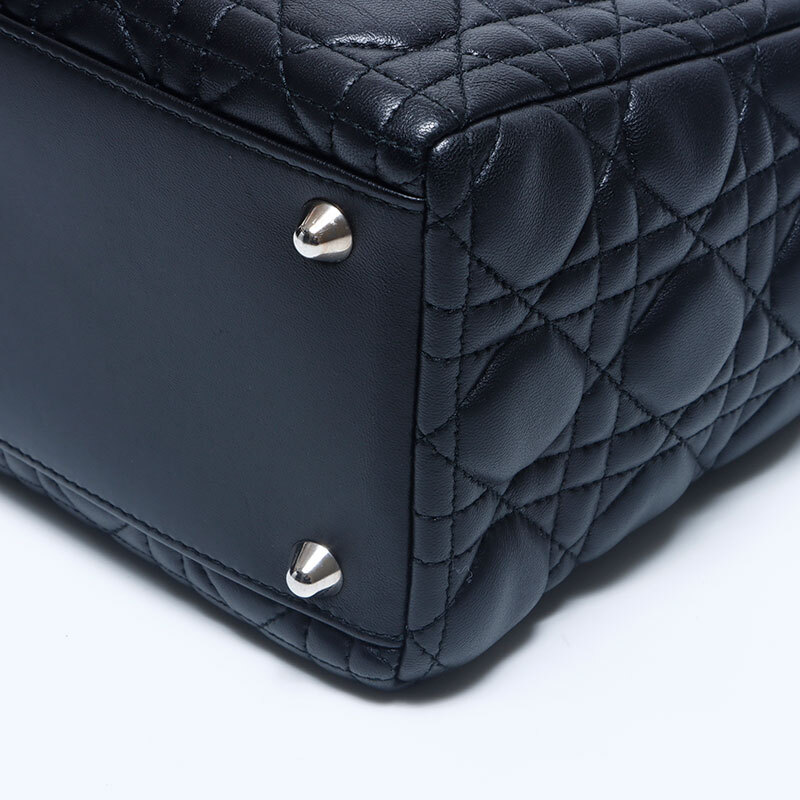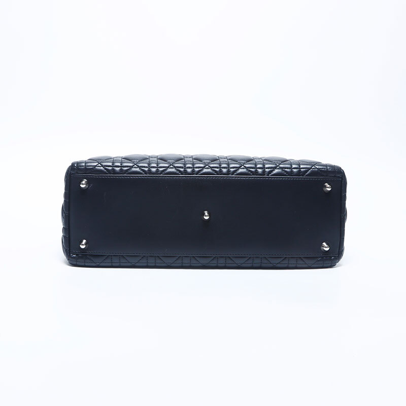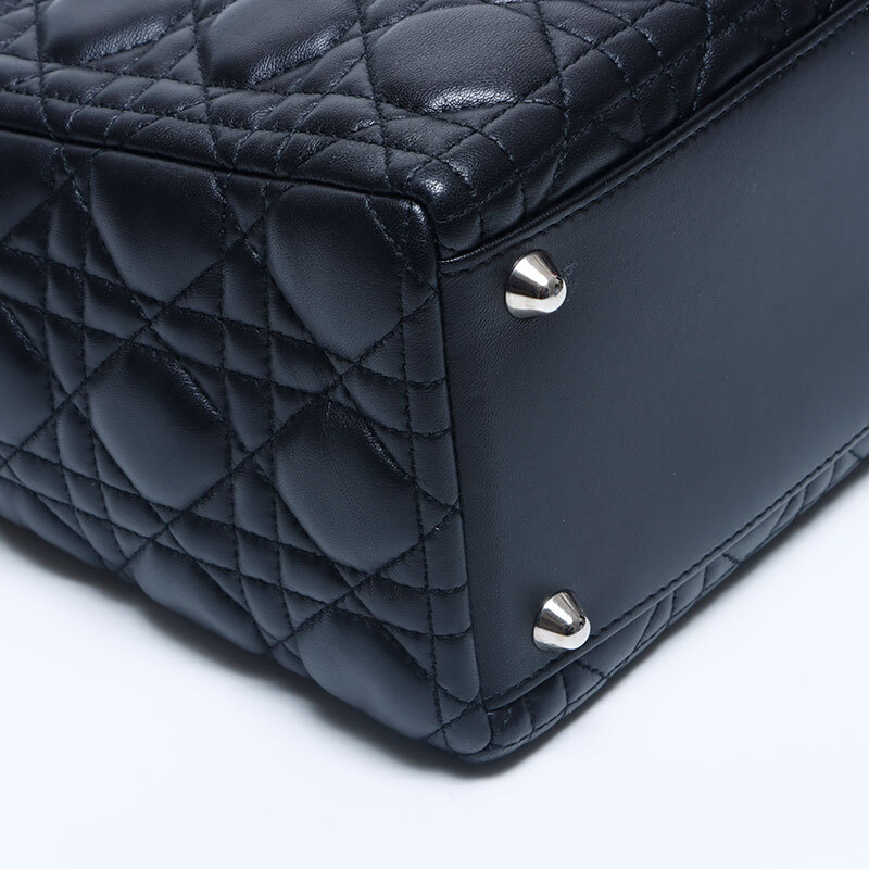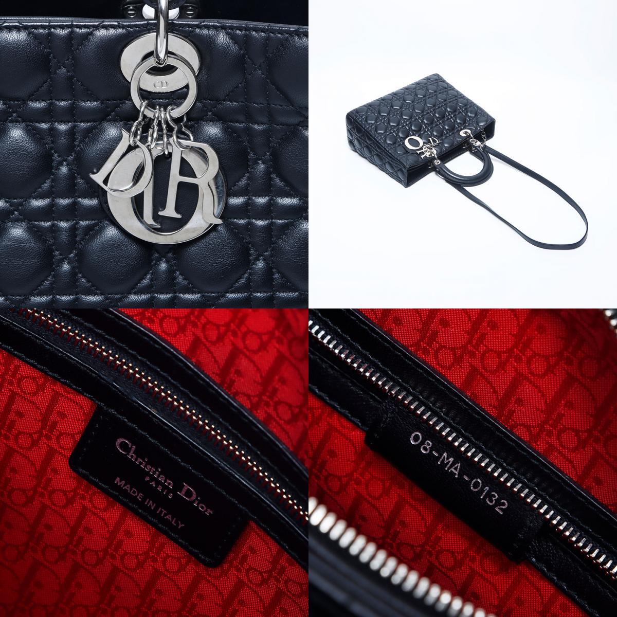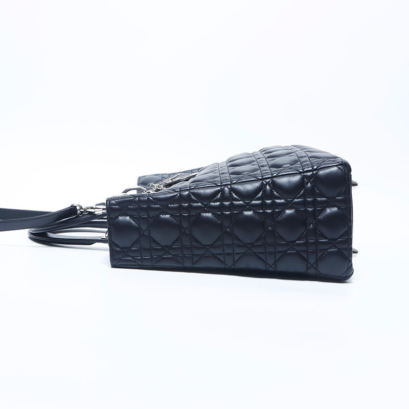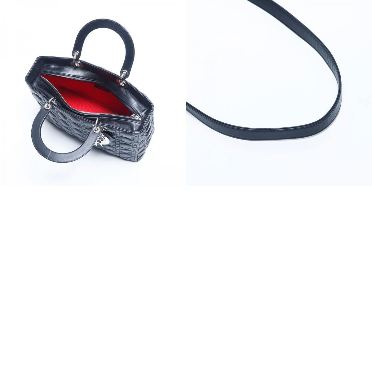 極美品 Christian Dior レディディオール シルバー金具 2way レザー ラージ ハンドバッグ ブラック