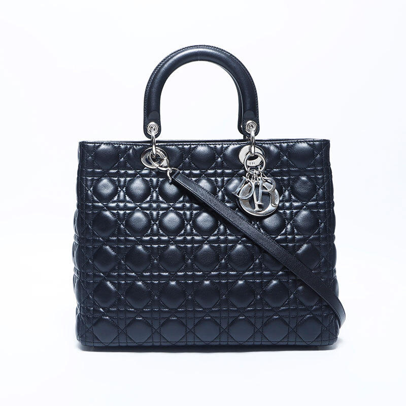 クリスチャンディオール Christian Dior ハンドバッグ レディディオール シルバー金具 2way レザー ラージ ブラック