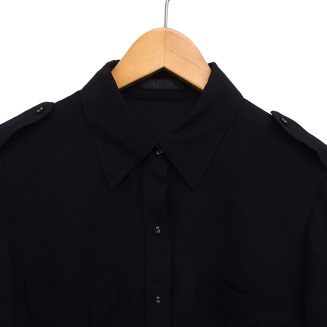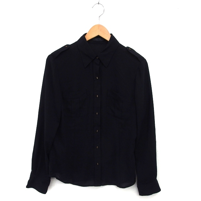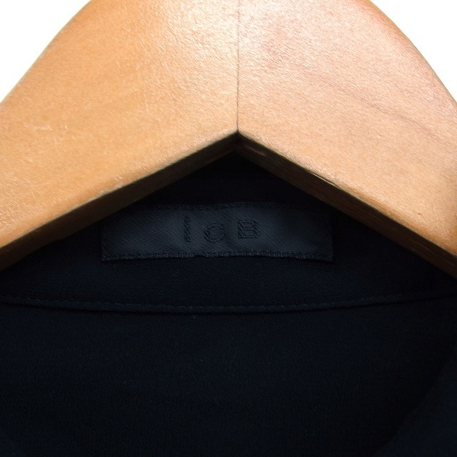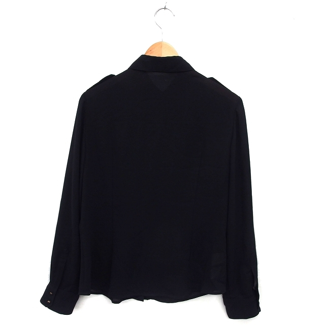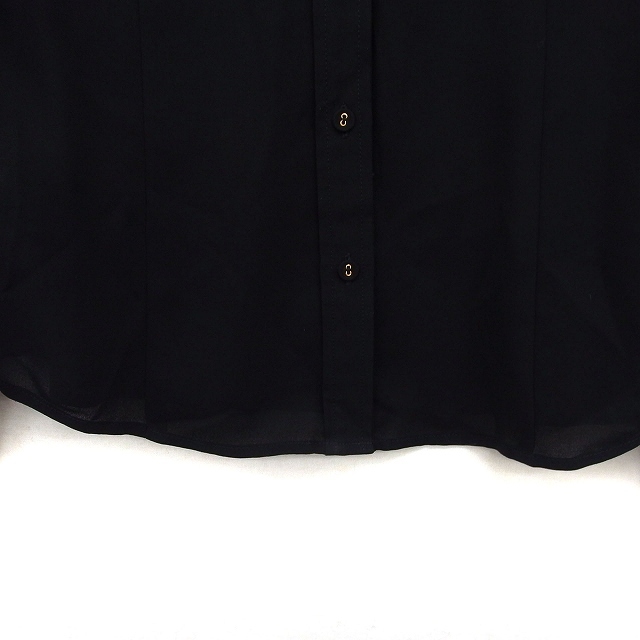 アイシービー iCB ステンカラー シャツ ブラウス 透け感 タック 無地 シンプル 長袖 44 黒 ブラック /NT22 レディース
