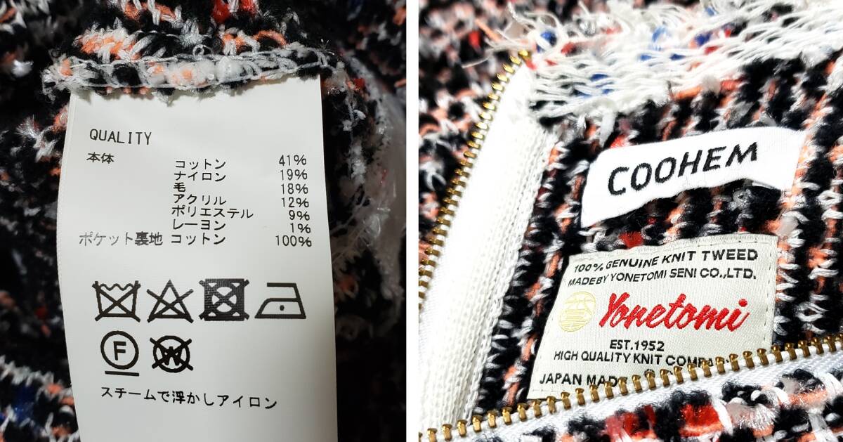 素材:綿41%, 毛18%, ナイロン19%, アクリル12%, ポリエステル9%, レーヨン1%
