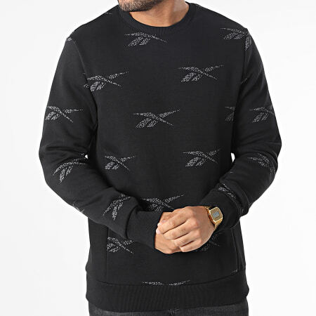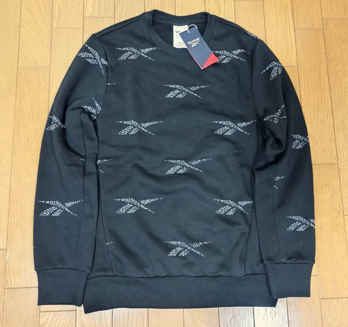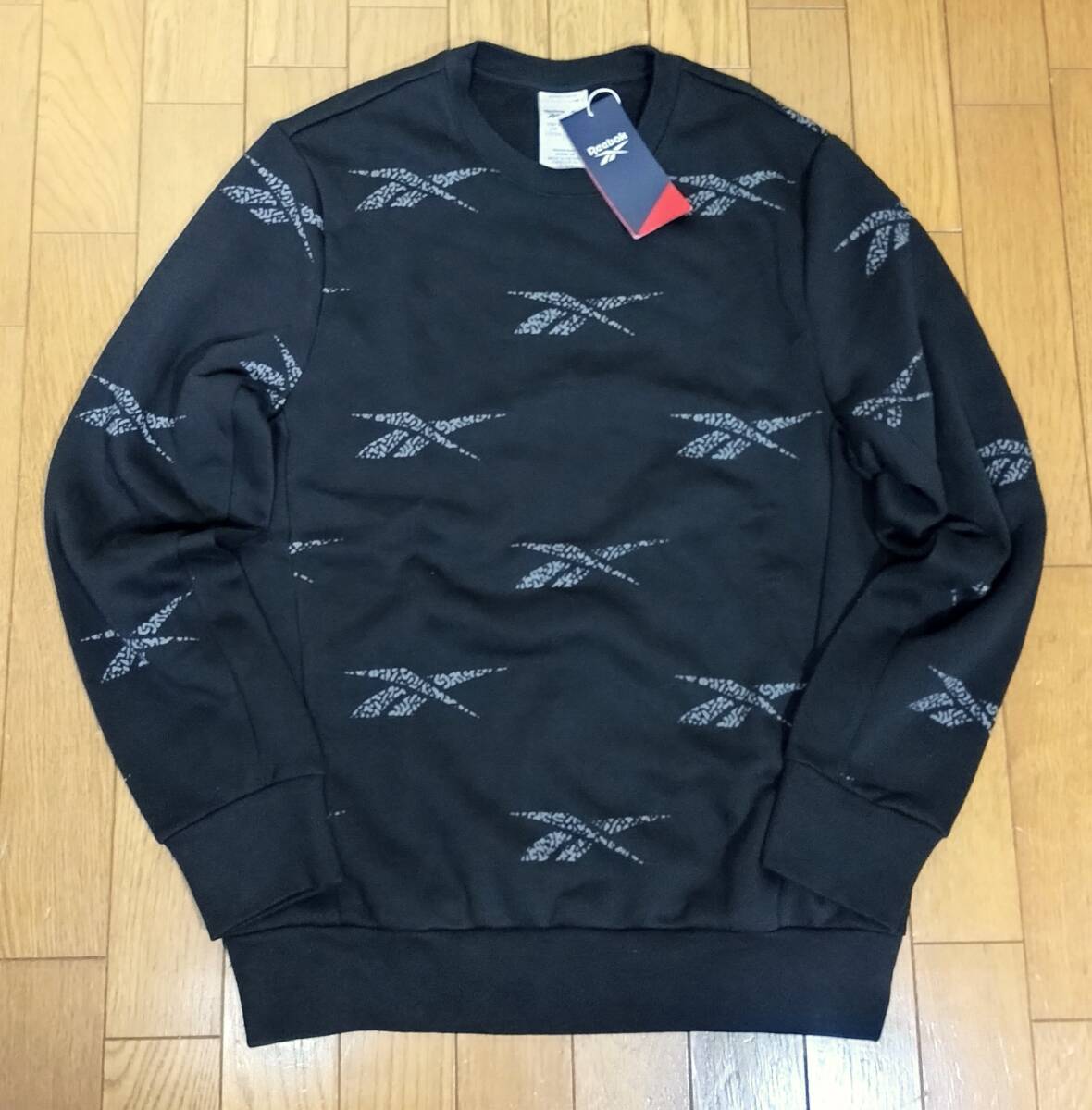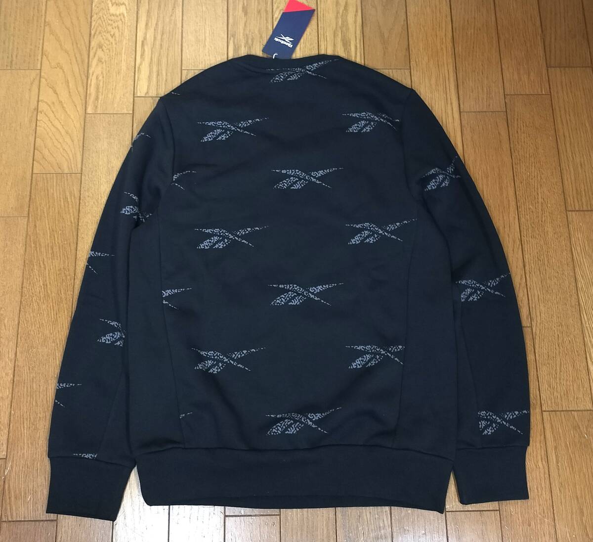 (物36) 定価7,690円 新品 リーボック 総柄 裏起毛 スウェットシャツ トレーナー DH024 黒 メンズM