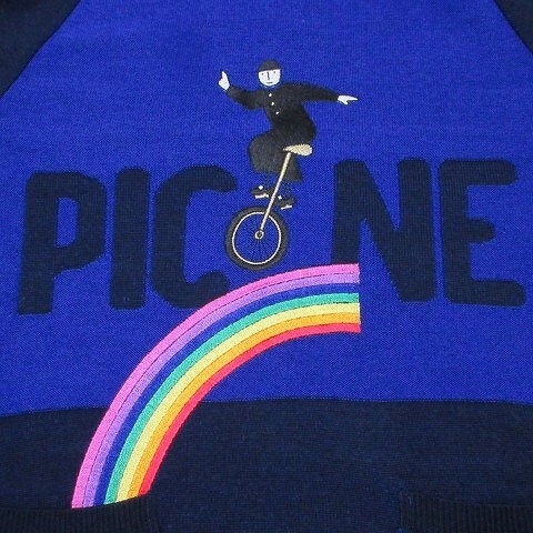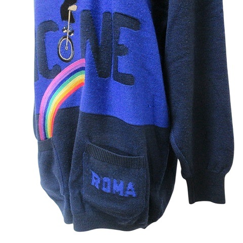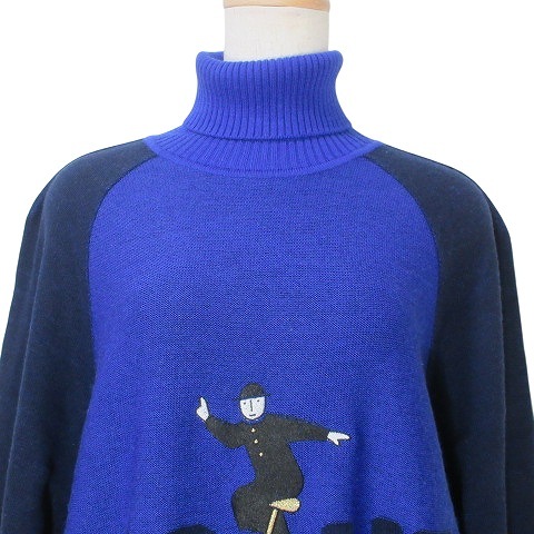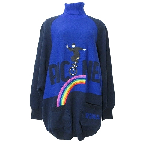 ピッコーネ PICONE STUDIO PICONE ROMA タートルネック ニット セーター 厚手 ウール 長袖 刺繍 虹 青 紺 38 M相当 X レディース