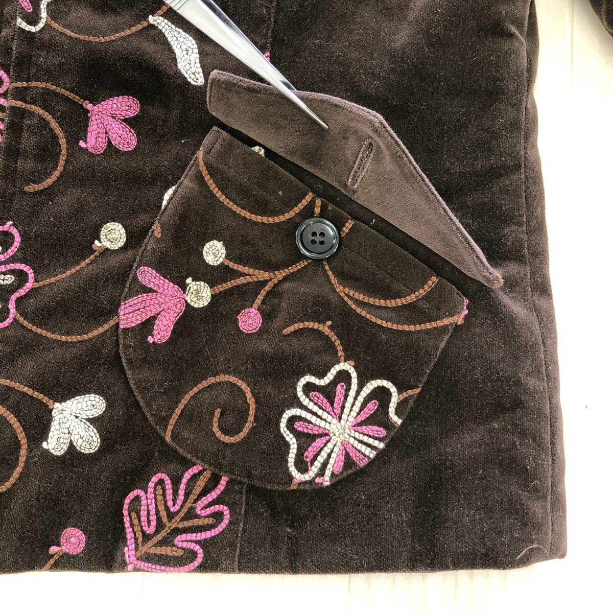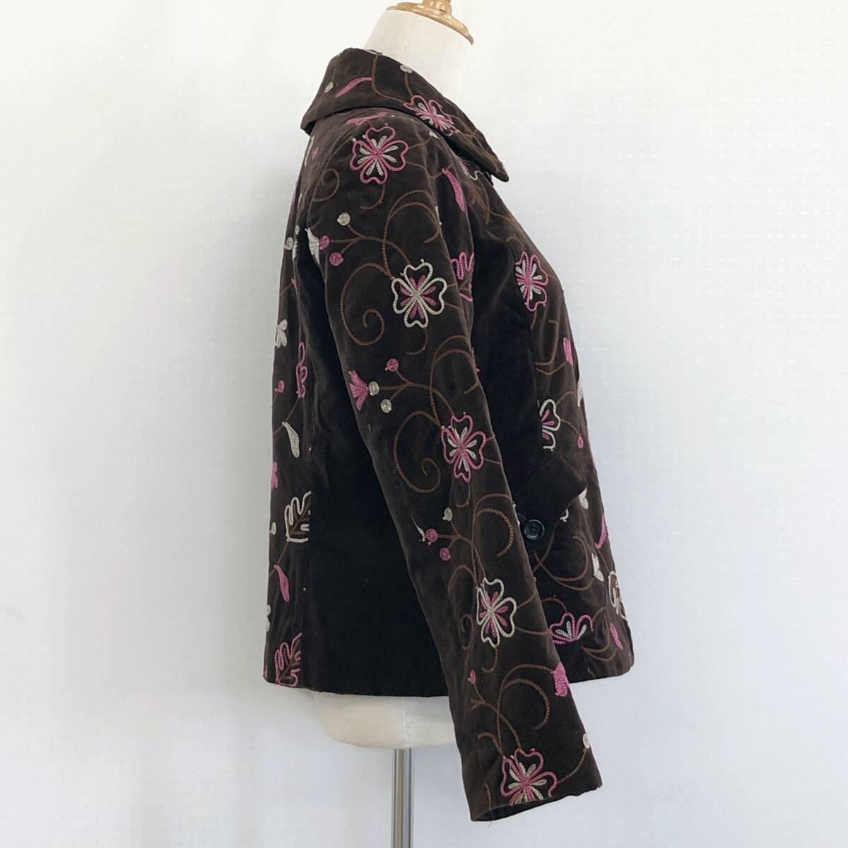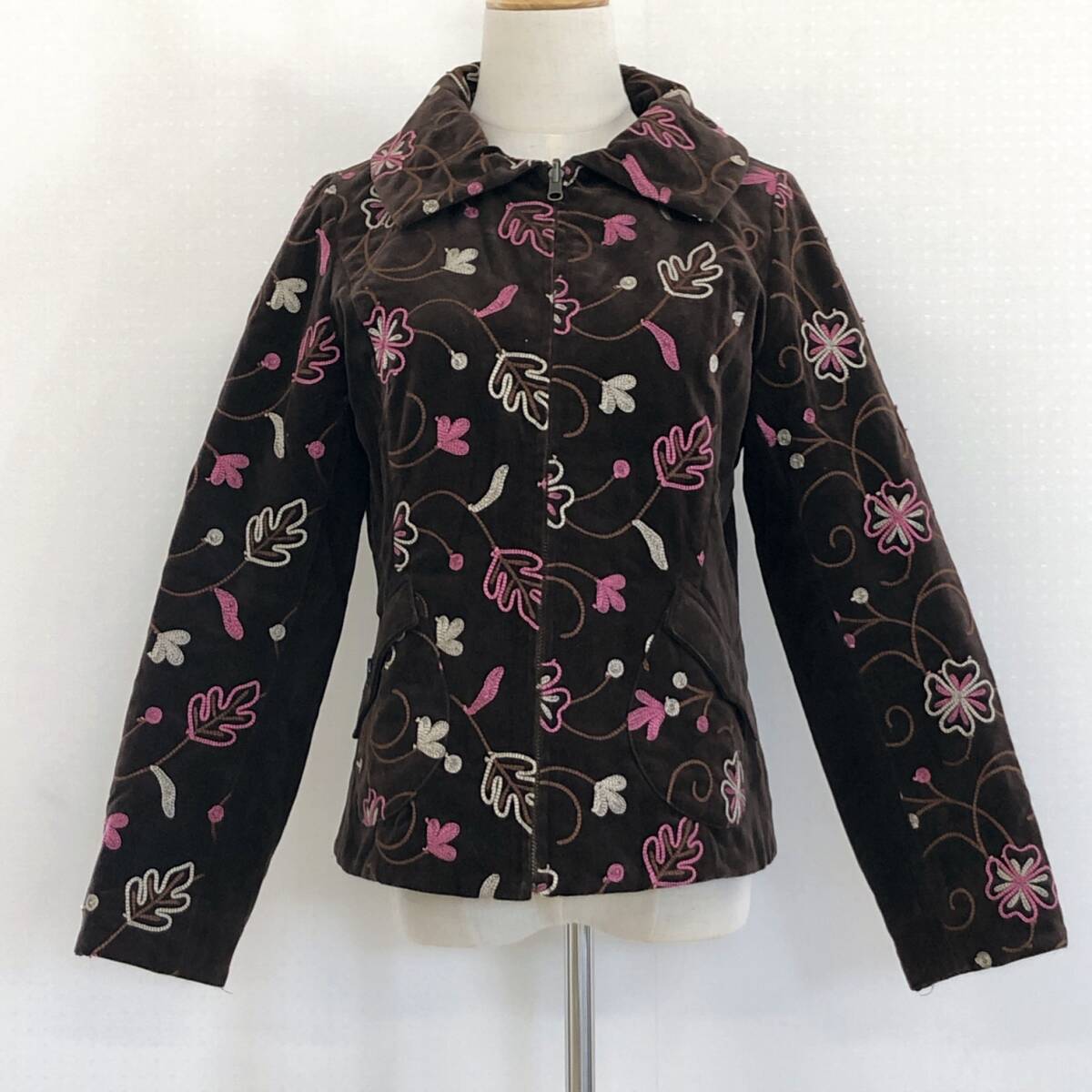 Y1273 MB レディース アウター 長袖 厚手 ポケット ジッパー 刺繍 花柄 綿100% シンプル かわいい おしゃれ あたたか 秋冬 キッズ