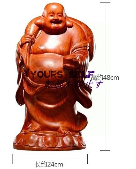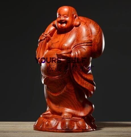 木彫りの布袋さま 木像 木製フィギュア 花梨木 高さ38cm 布袋様 置物 木彫り 金運アップ 置物 仏像