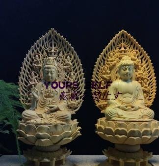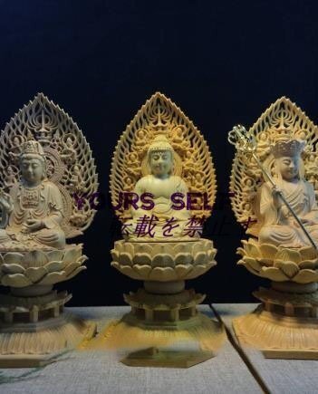 一刀彫 極上品 釈迦如来三尊 仏教工芸品  総柘植材 木彫仏像  釈迦如来 地蔵菩薩 観音菩薩
