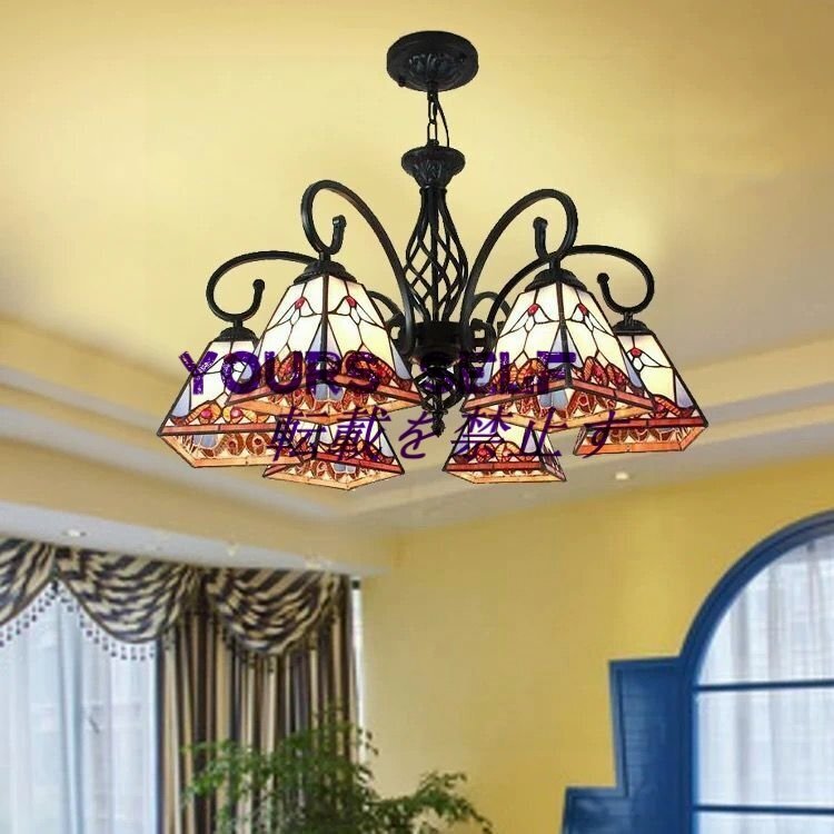 高級感溢れる★極美品 ステンドグラス ペンダントライト 豪華天井照明ステンドグラスランプ ガラス工芸品 レトロな雰囲気がおしゃれ U389