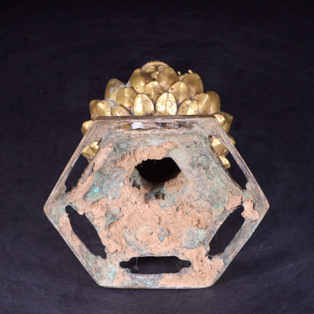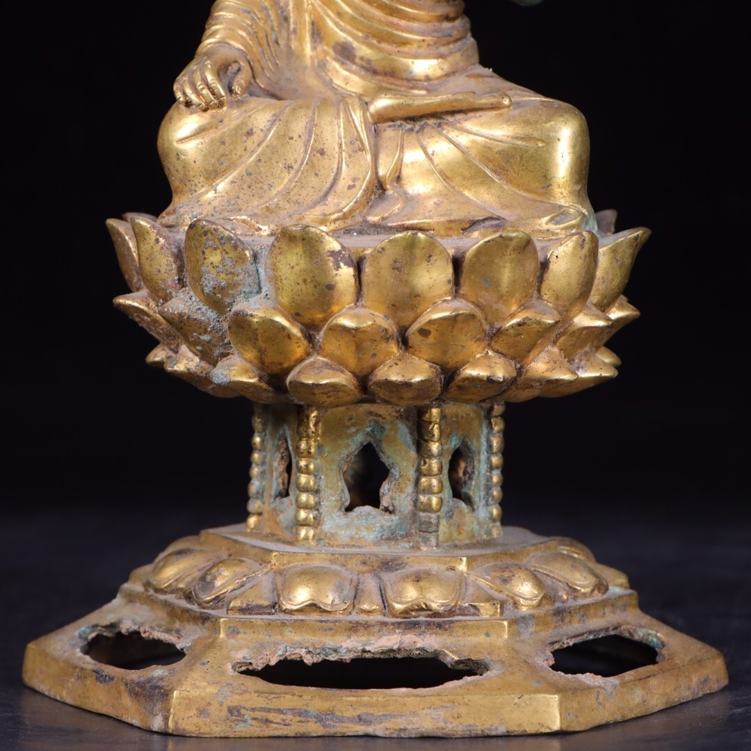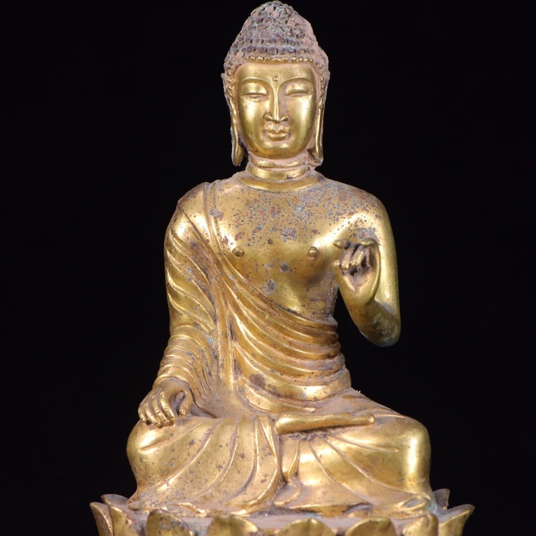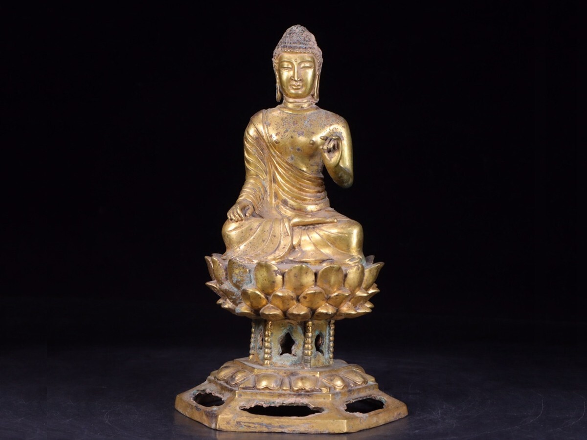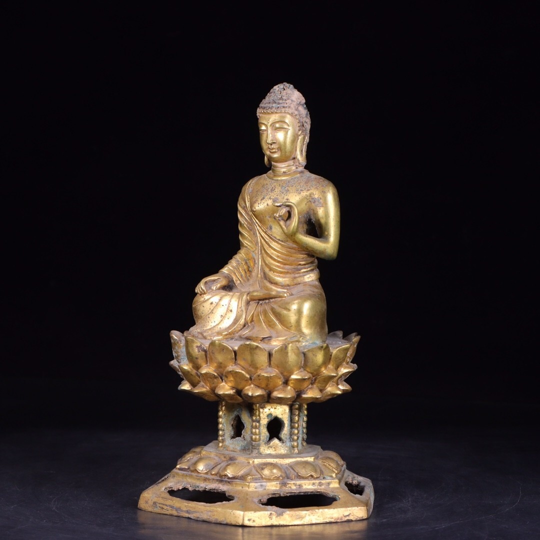 【瓏】古銅彫 塗金仏像擺件 唐時代 古置物擺件 銅仏像 仏教文化 古美術 蔵出