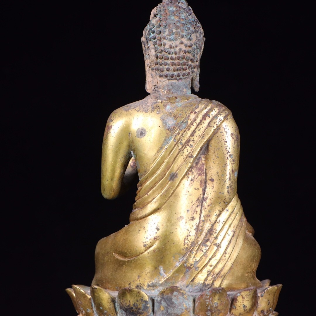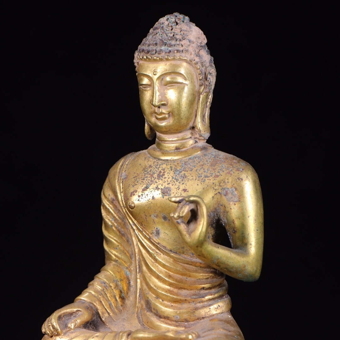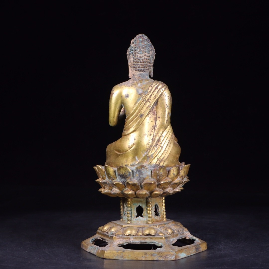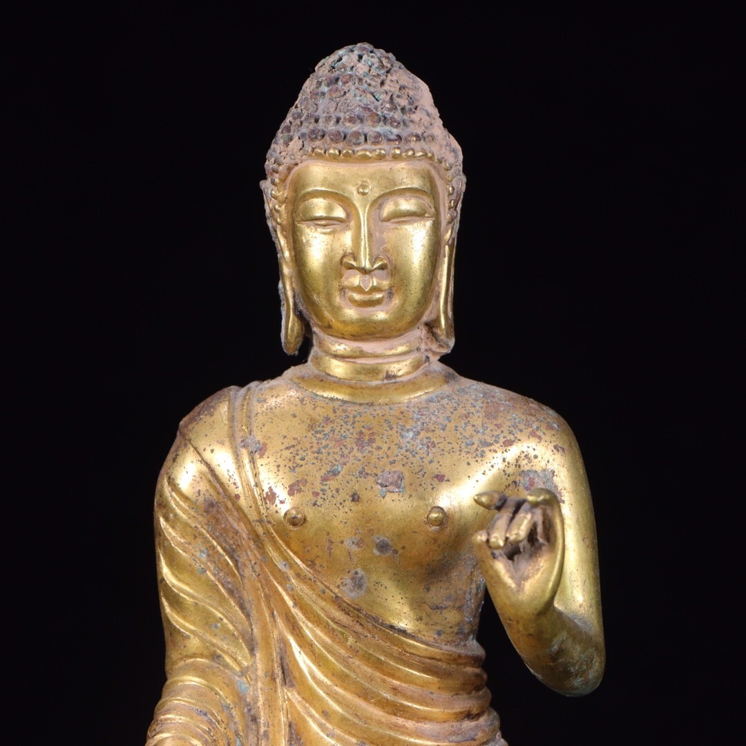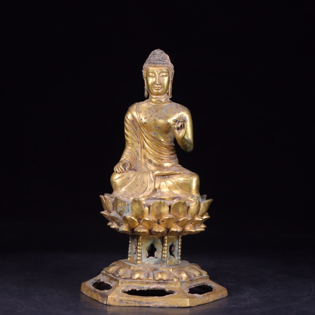 【瓏】古銅彫 塗金仏像擺件 唐時代 古置物擺件 銅仏像 仏教文化 古美術 蔵出
