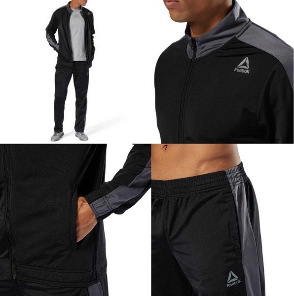 リーボック TE トリコット トラックスーツ O(LL)サイズ ブラック/グレー 黒 Reebok スタンドカラージャケット&パンツ ジャージ上下セット