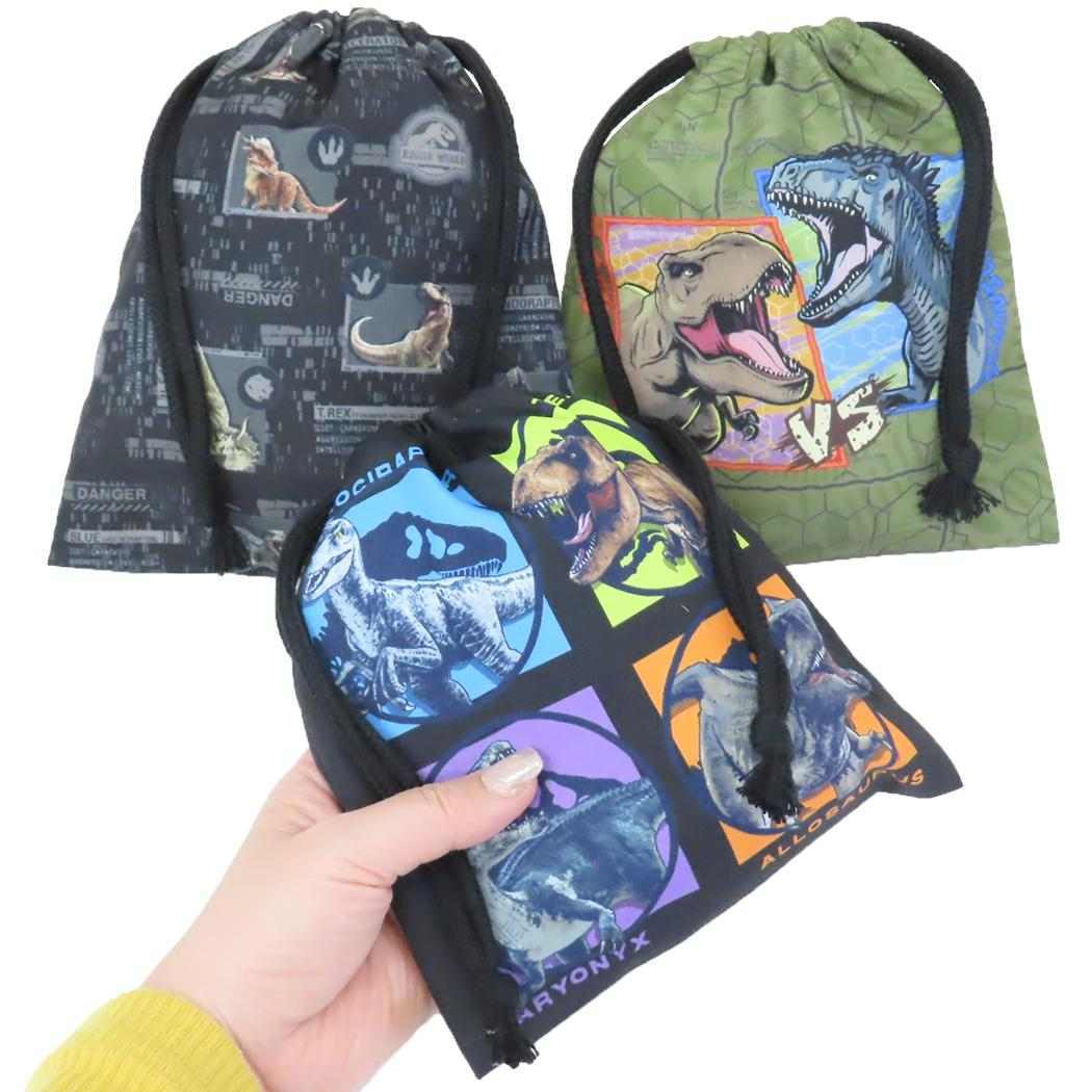 ジュラシックワールド 巾着袋 巾着S 3枚セット 恐竜 高波クリエイト マルチポーチ 子供 コップ袋 映画キャラクター グッズ