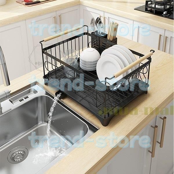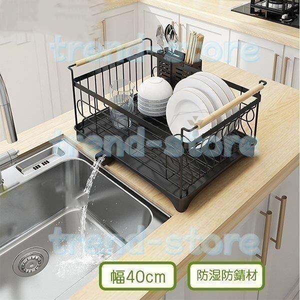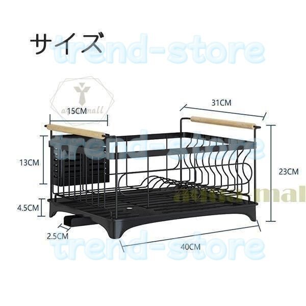 水切りラック 幅40cm ステンレス製 水切りカゴ 食器水切り ディッシュラック カトラリーポケット付き 自動排水 箸かご サブ水切り 食器乾燥