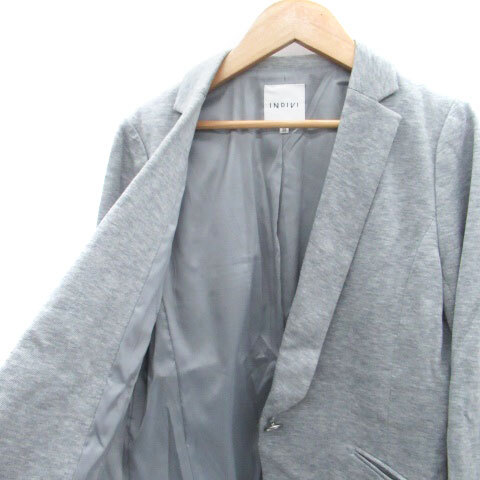 インディヴィ INDIVI テーラードジャケット シングルボタン 総裏地 ミドル丈 38 M グレー /HO24 レディース
