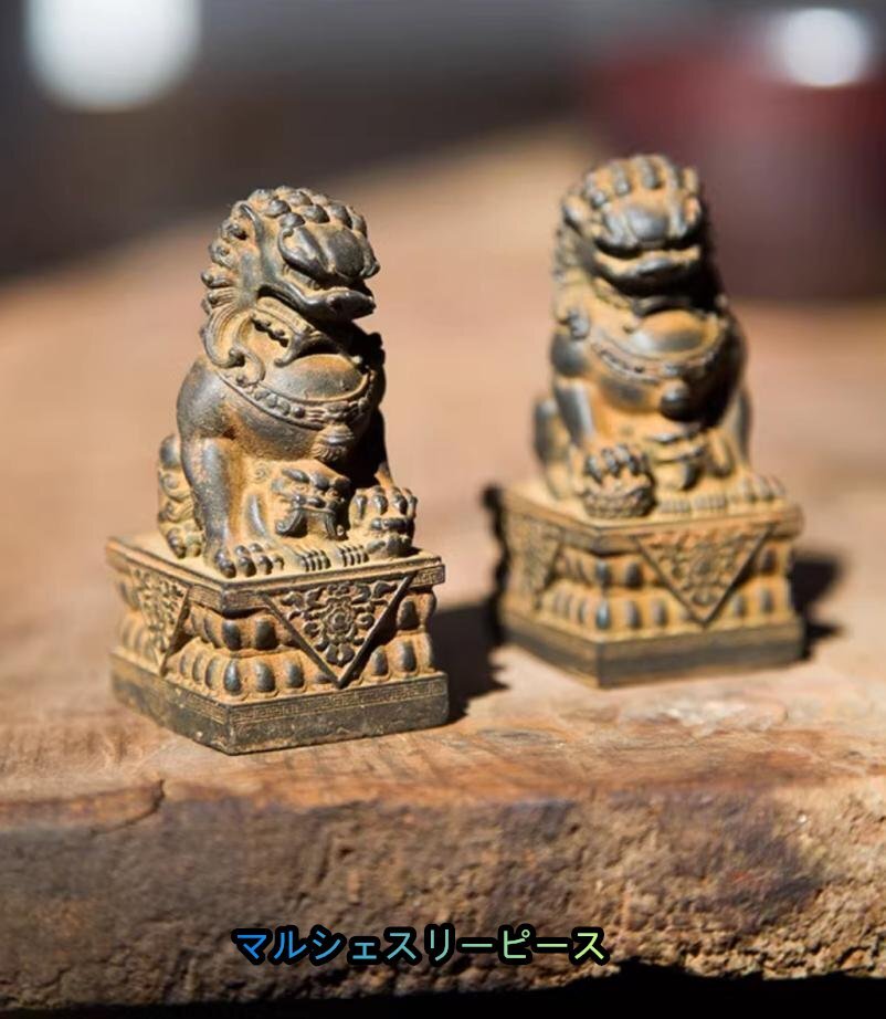中国 ライオン 狛犬 2匹 茶寵 茶置物 鎮紙 茶道 置物 中国美術 装飾 収蔵コレクション
