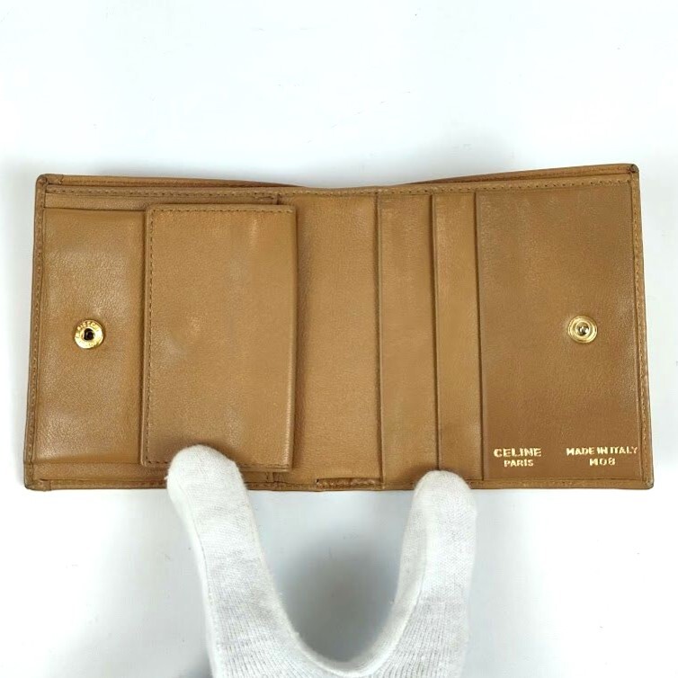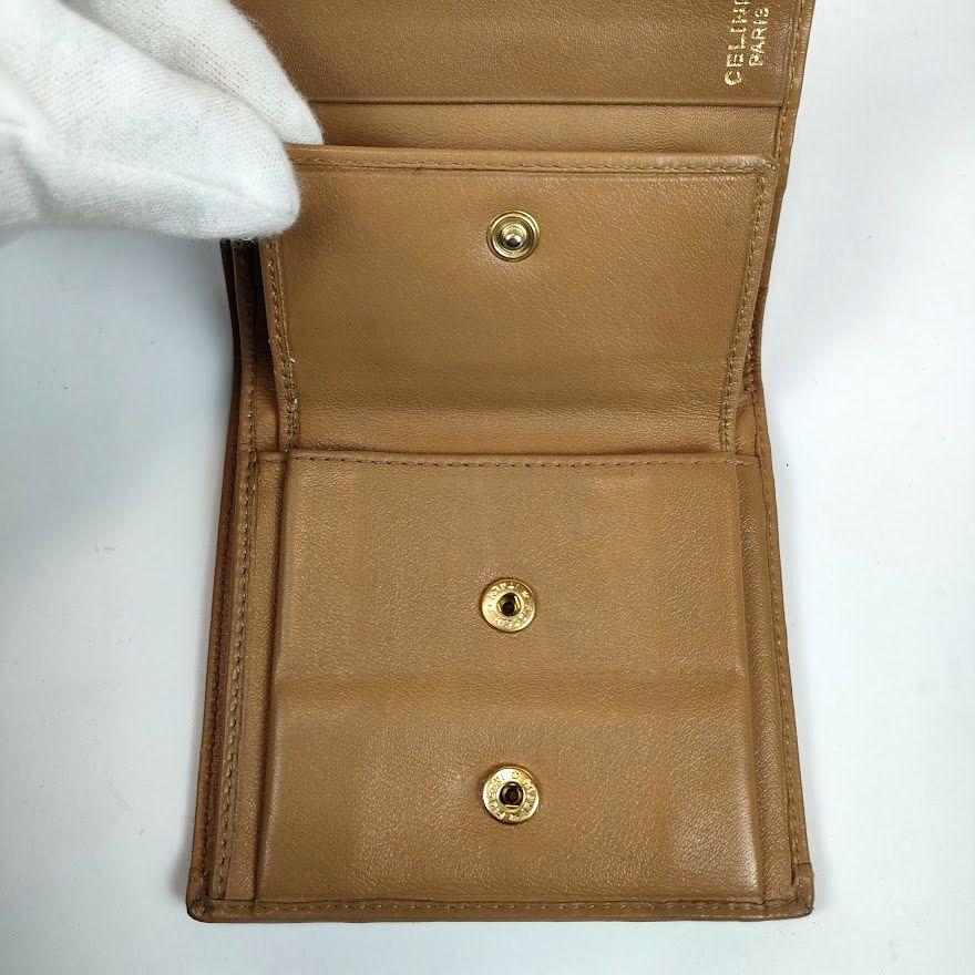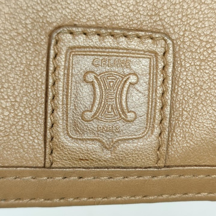 希少美品 CELINE セリーヌ 二つ折り財布 トリオンフ レザー ベージュ ビンテージ M08 レディース レア ヴィンテージ 小銭入れあり y2k