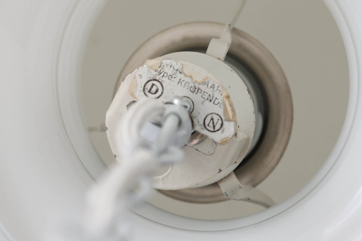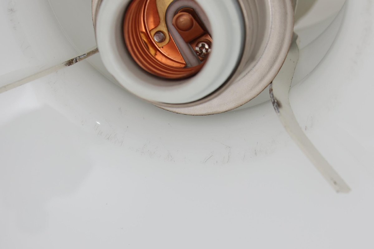 コンディション | ソケットを留めるパーツに経年の使用感がございますが、ガラスシェードは製造時のものと思われる気泡割れ、若干の擦り傷程度で綺麗な状態です。 ※ビンテージ品です。お伝えしきれない細かい傷や使用感等が御座います。ご了承下さいませ。 「メンテナンス内容」 各パーツを取り外してクリーニング済みです。全ての電気部品は技術基準に適合するよう製造、修理しております。 |